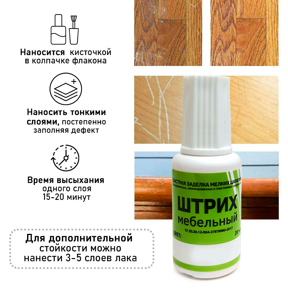 Излишки штриха удалить при помощи намоченной ткани, срок полного высыхания - 2 часа.