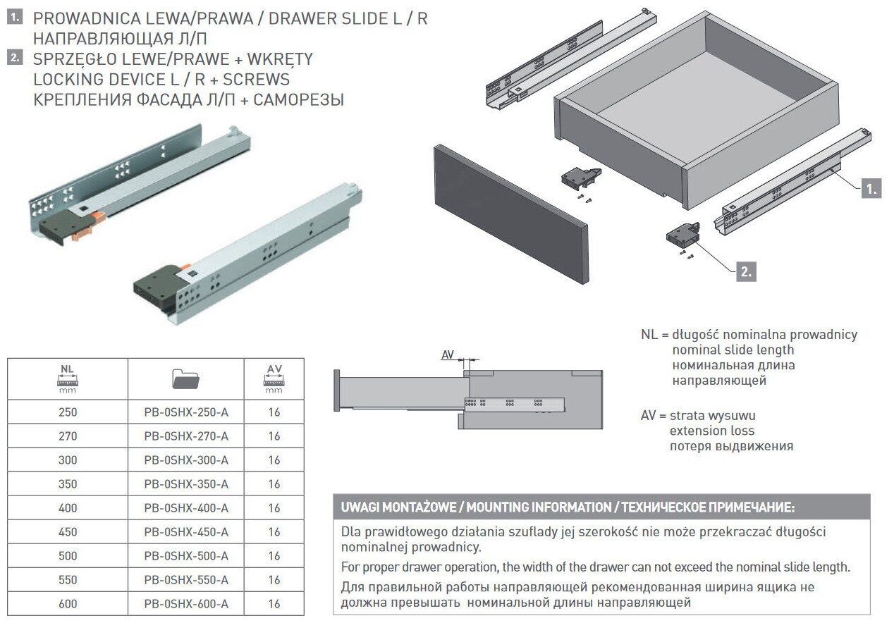Направляющие MODERN SLIDE L-600 полного выдвижения для деревянных ящиков с доводчиком GTV (PB-0SHX-600-A)