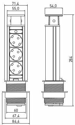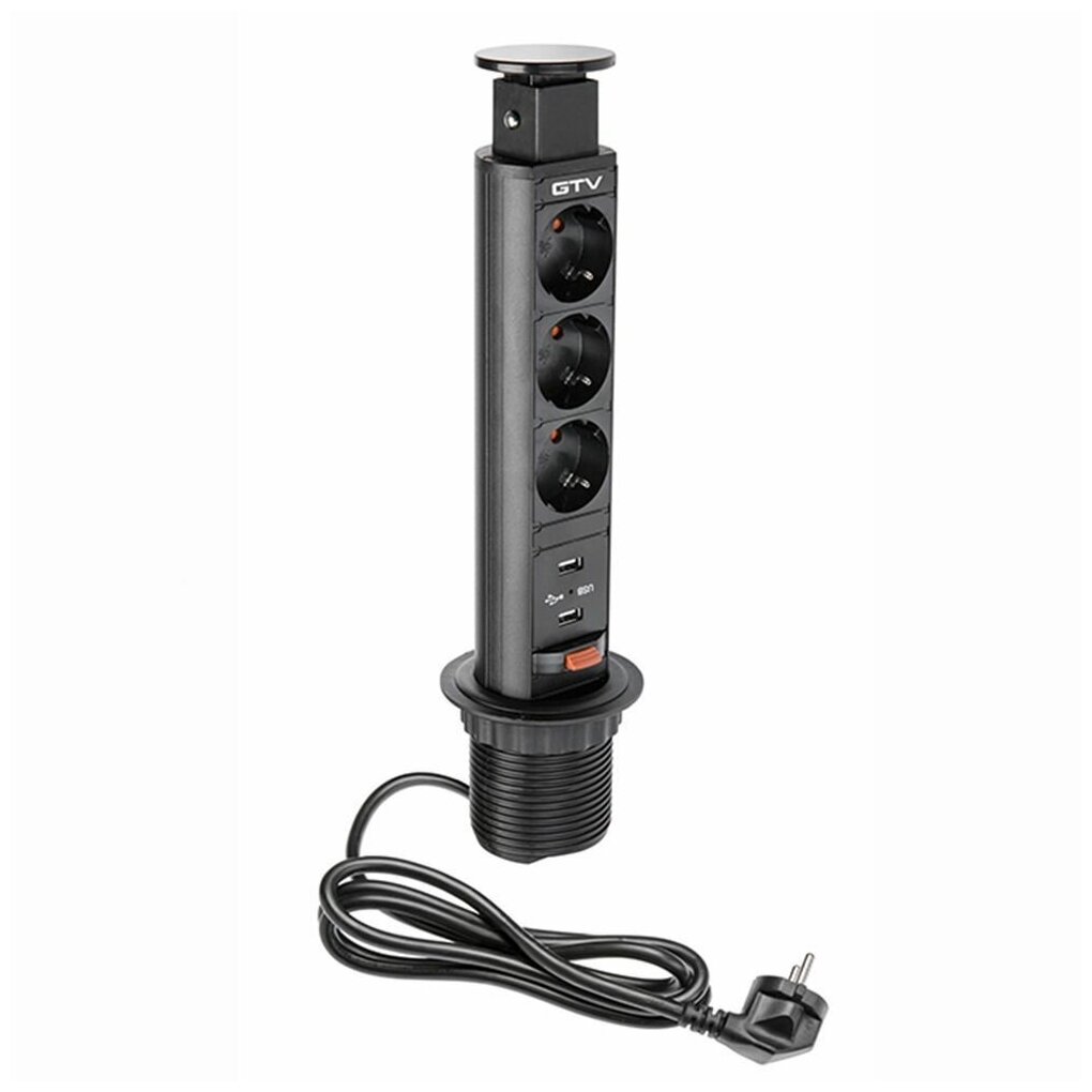 Удлинитель выдвижной 3 розетки AE-BPW3S60U-20 (Schuko) 2xUSB, черный, с проводом 1,5 метра - ваш надежный помощник на работе и дома, при использовании нескольких электроприборов. Удлинитель устанавливается в столешницу, в предварительно сделанное отверстие соответствующего диаметра, и полностью утапливается в нее, когда не используется. Как только вам нужно подключить какое-либо устройство, вы легким движением извлекаете наружу розеточный блок и подключаете к сети ваш гаджет.
