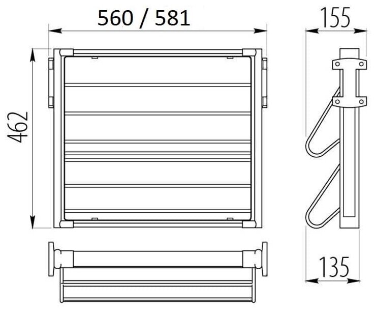 Ширина установки полки регулируется в диапазоне 560 - 581 мм.