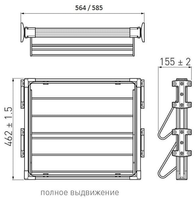 Ширина установки полки регулируется в диапазоне 564 - 585 мм.