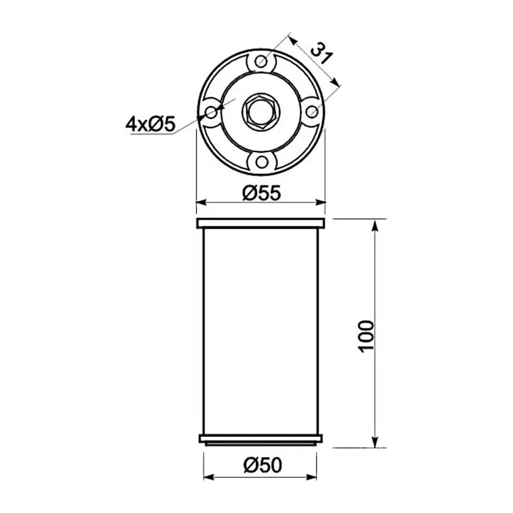 Опора регулируемая NM-BD867-100, 50х100 мм, алюминиевая, 100 кг - круглая мебельная ножка, с регулировкой по высоте от 100 до 110 мм.
