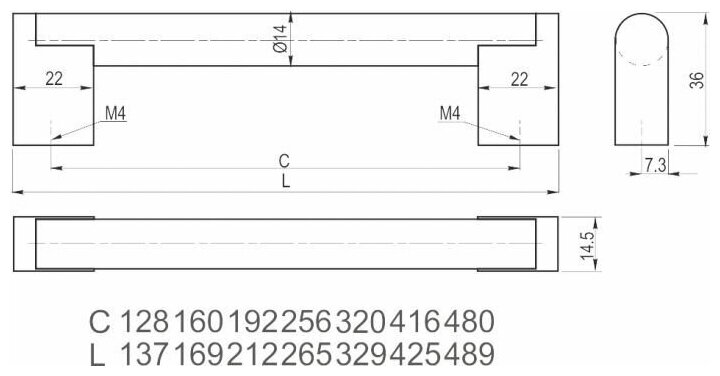 Ручка UZ 336-416 инокс GTV (UZ-336416-06)
