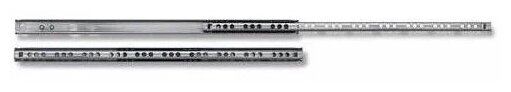 Направляющие шариковые полного выдвижения 45/650 мм, 50 кг - мебельные механизмы, используемые при сборке выкатных ящиков, а также применяемые в различной функциональной фурнитуре, такой как сегрегаторы, корзины для шкафов-купе и в прочих выдвижных системах в кухонной, гардеробной, офисной и специализированной мебели. Отличительная особенность шариковых направляющих данного типа (H45 PRO); повышенная нагрузка - 50 кг.
