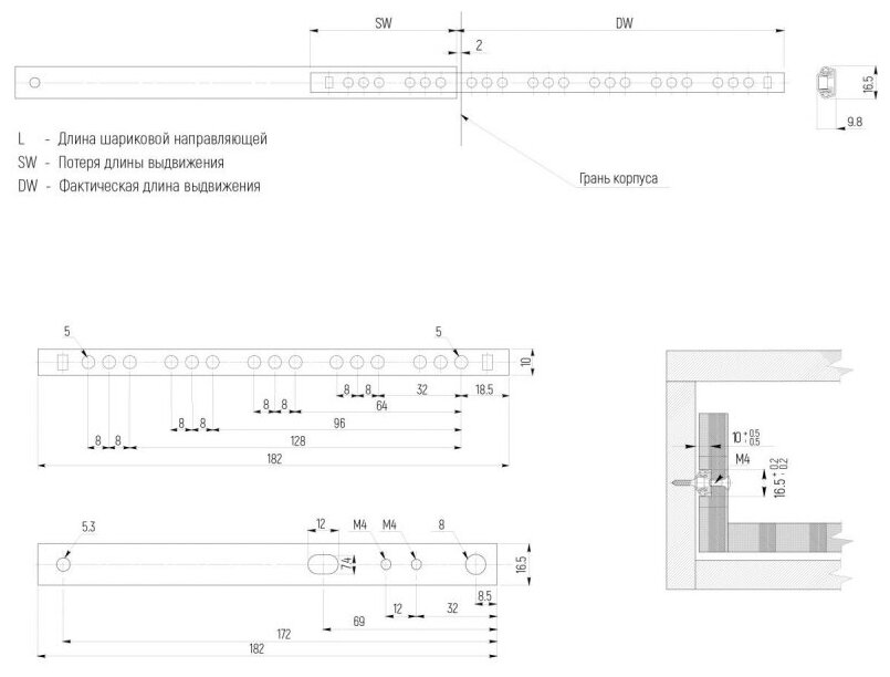 Гармоничное разнесение нагрузки по выдвижному механизму, что обеспечивает повышенную устойчивость направляющих и стабильность работы