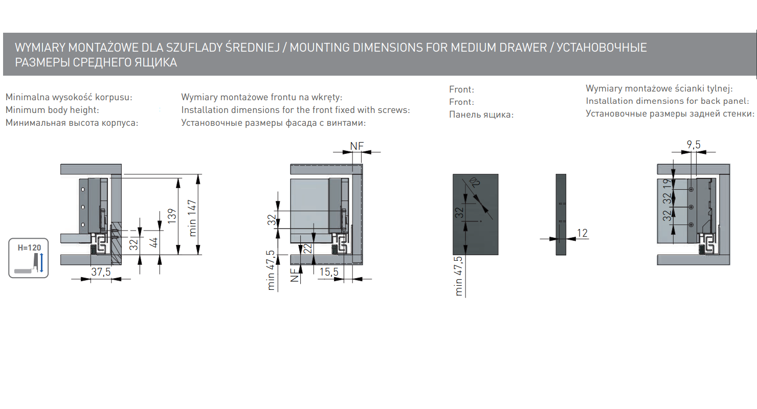 Регулировка фасада в вертикальной (+/- 2 мм) и горизонтальной (+/- 2 мм) плоскостях.