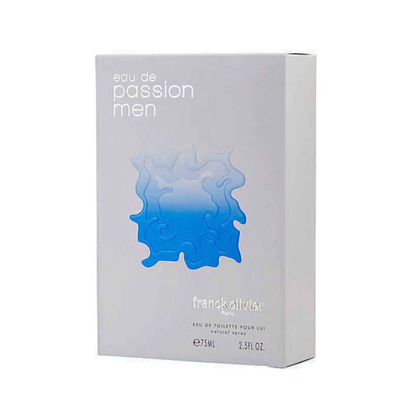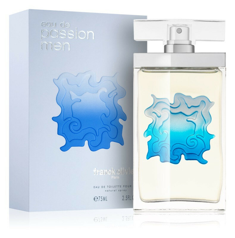 Frank Olivier Eau de Passion Men («Фрэнк Оливье. Вода страсти для мужчин») - возбуждающий аромат для мужчин, выпущенный в 2008 году, известным модельером Фрэнком Оливье. Первый его аромат был создан еще в 1993 году и отличился нотками свежести на цветочно-фруктовой основе. Эта композиция поднимает волну головокружительной страсти. Чувственный, интригующий шлейф, создан для сильных духом и решительных мужчин, смотрящих в глаза опасности. Также для мужественных и открытых личностей, знающих вкус победы, подойдут духи Frank Olivier Sunrise for men, завораживающие свое чувственной аурой харизмы и привлекательностью. Парфюмерная композиция аромата Frank Olivier Eau de Passion Men намекает на игристый, страстный, чувственный, завораживающий, оттенок его обладателя и состоит из множества запахов: гальбанума, сицилийского лимона, грейпфрута, а также кипариса, лаванды, тимьяна и кардамона.