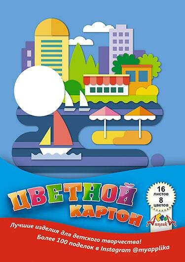 Картон цветной 16 листов 8 цветов "Цветное лето" (С2421-13) АппликА