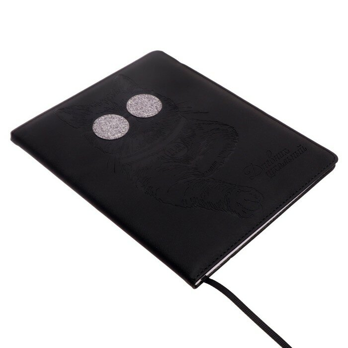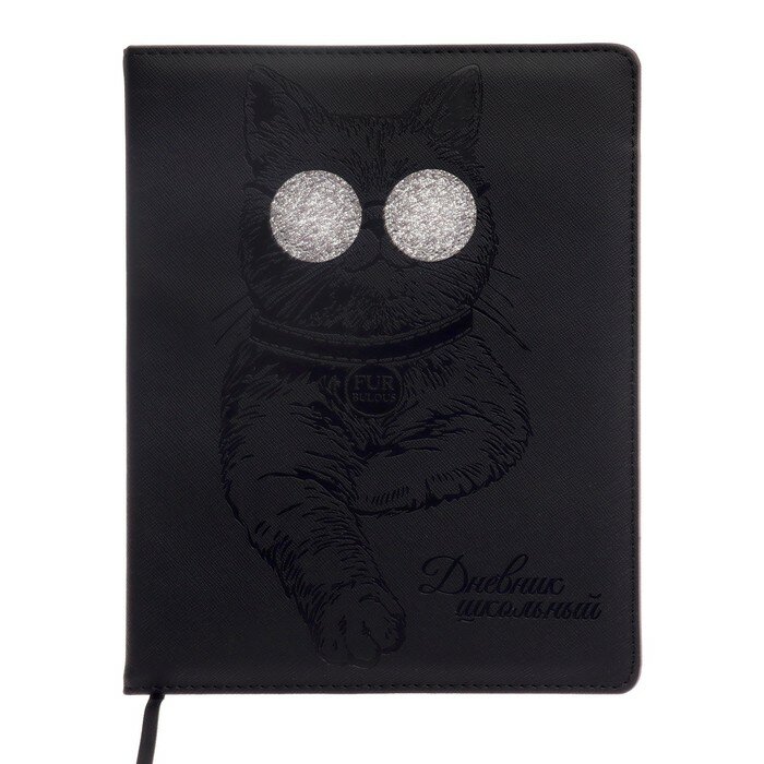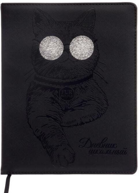 Дневник школьный, КРУТОЙ КОТ формат А5+, 48 л., твёрдый переплёт с поролоном, аппликация из искусственной кожи, блинтовое тиснение, углы обложки закруглённые, углы блока закруглённые, одно ляссе, красочность блока: печать в одну краску, красочность форзаца: печать в одну краску. Блок: бумага - белый офсет, 80 г/м?, справочный материал.
