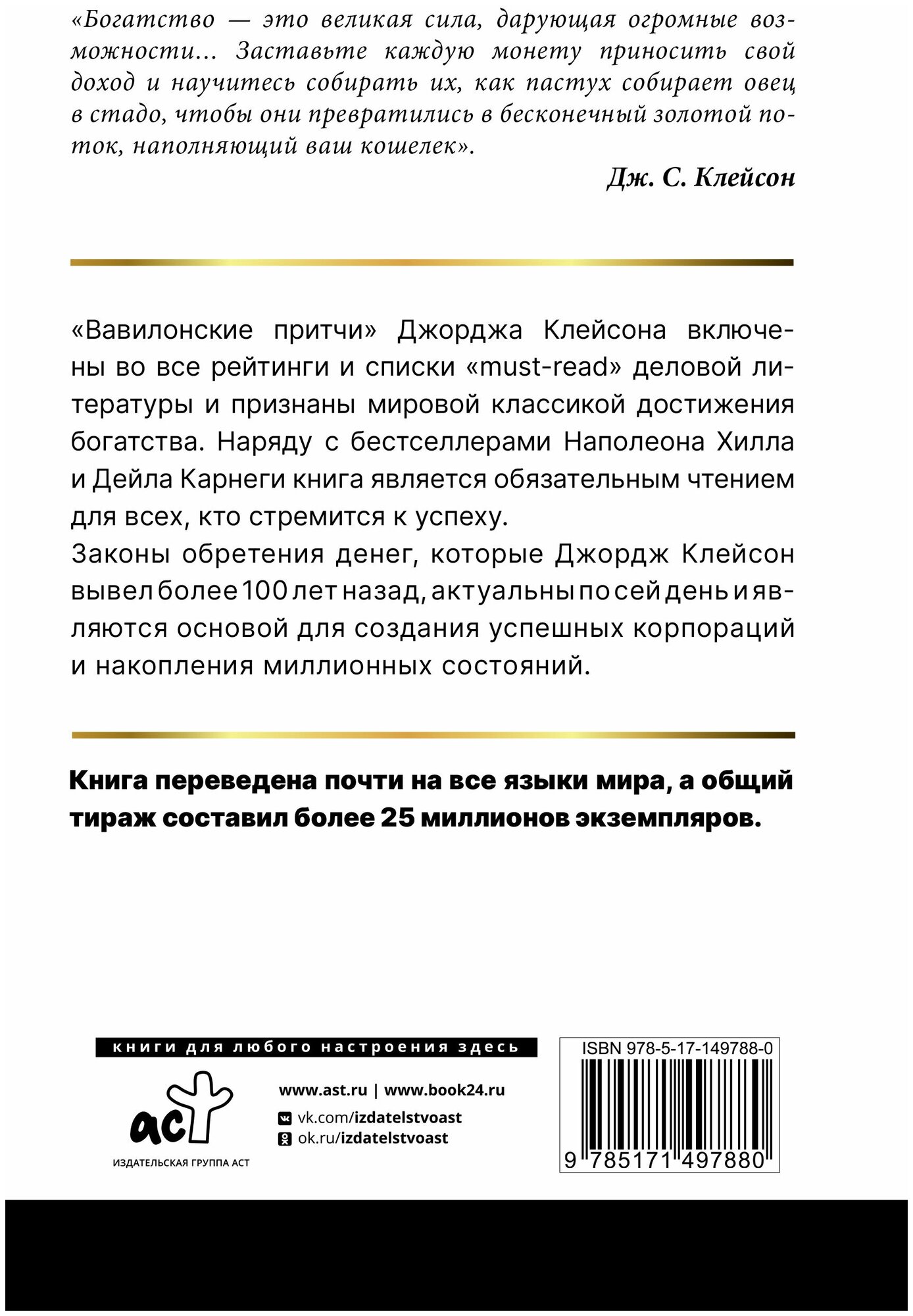 Знаменитые "Вавилонские притчи" Сэмюэля Клейсона - величайшее из всех вдохновляющих произведений на тему финансового планирования и личного богатства, это Библия процветания, которая будет поддерживать вас на протяжении всей жизни.