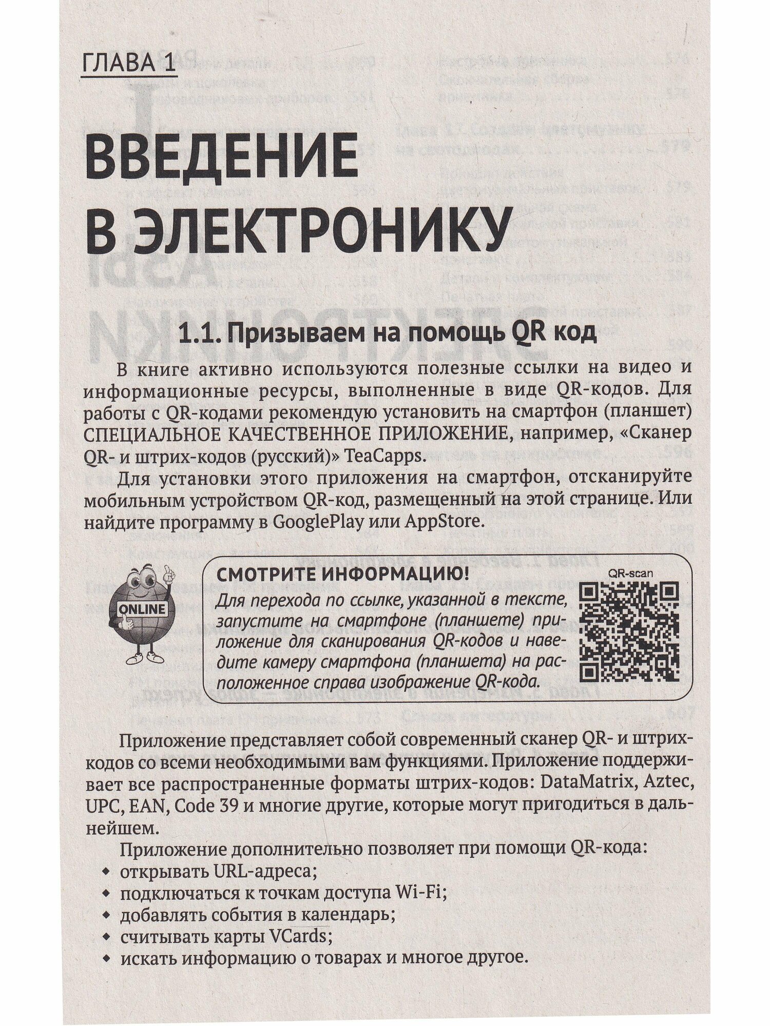В необходимых местах по тексту книги стоят многочисленные QR-коды, предназначенные для мгновенного перехода к необходимым ресурсам (онлайн видео, интерактивному калькулятору, справочной информации). Приложение «Сканер QR и штрих-кодов», запущенное на смартфоне (планшете), позволяет быстро перейти по необходимой ссылке при наведении гаджета на QR-код по ходу чтения книги.
