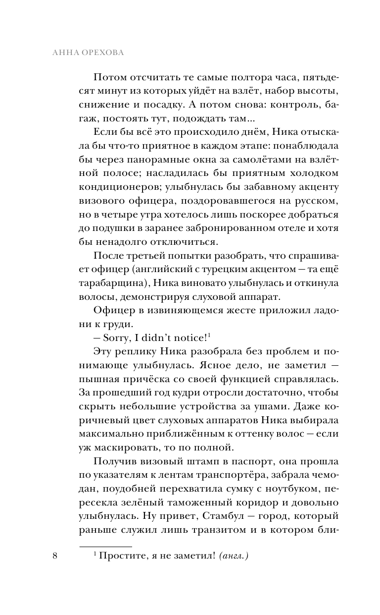 Некоторые трудности при чтении могут вызвать предложения, написанные так, как их слышит героиня с нарушениями слуха. Приходится немного напрягаться и додумывать смысл. Однако это только добавляет достоверности и позволяет читателям встать на место слабослышащих людей. Рекомендую книгу.