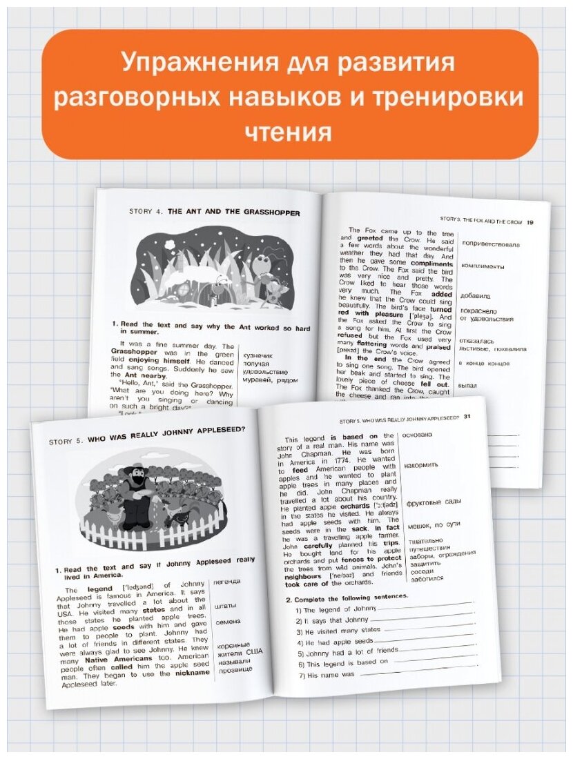 Замечательная книга, как и вся серия в целом. Небольшие поучительные рассказы, задания к каждому тексту, словарь незнакомых слов, все сделано просто отлично. Сын читает басни, а позже мы с ним обсуждаем прочитанное, тоже на английском. Вижу, как иностранный язык дается всё легче!