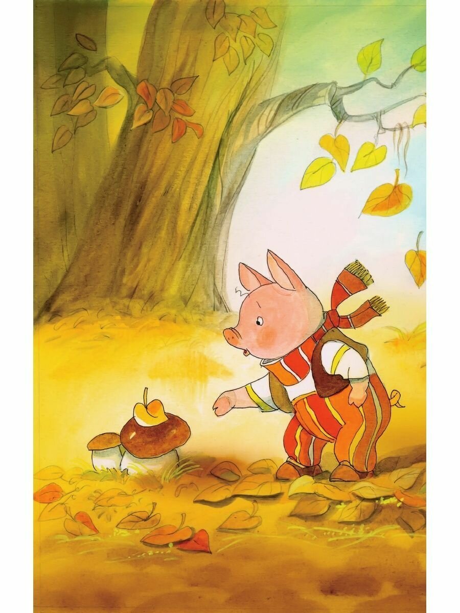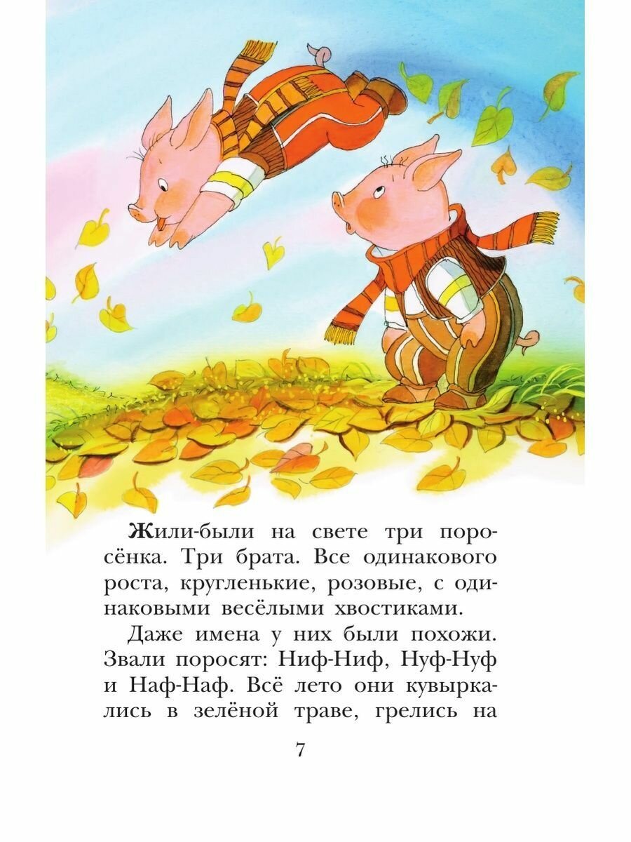 -сами иллюстрации считаю красивыми, волк в меру страшный и злой, поросята забавные, на мордочках всегда отображены именно те эмоции, которые и описаны( а то в некоторых изданиях поросята всегда радостно улыбаются,даже когда боятся)