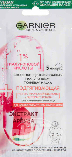Сервис сравнения цен СкидкаГИД предлагает сравнить цены на товар «Маска для лица Garnier Подтягивающая Высококонцентрированная гиалуроновая 15г Маска для лица Garnier Высококонцентрированная для кожи с возрастными изменениями тканевая 15 г»