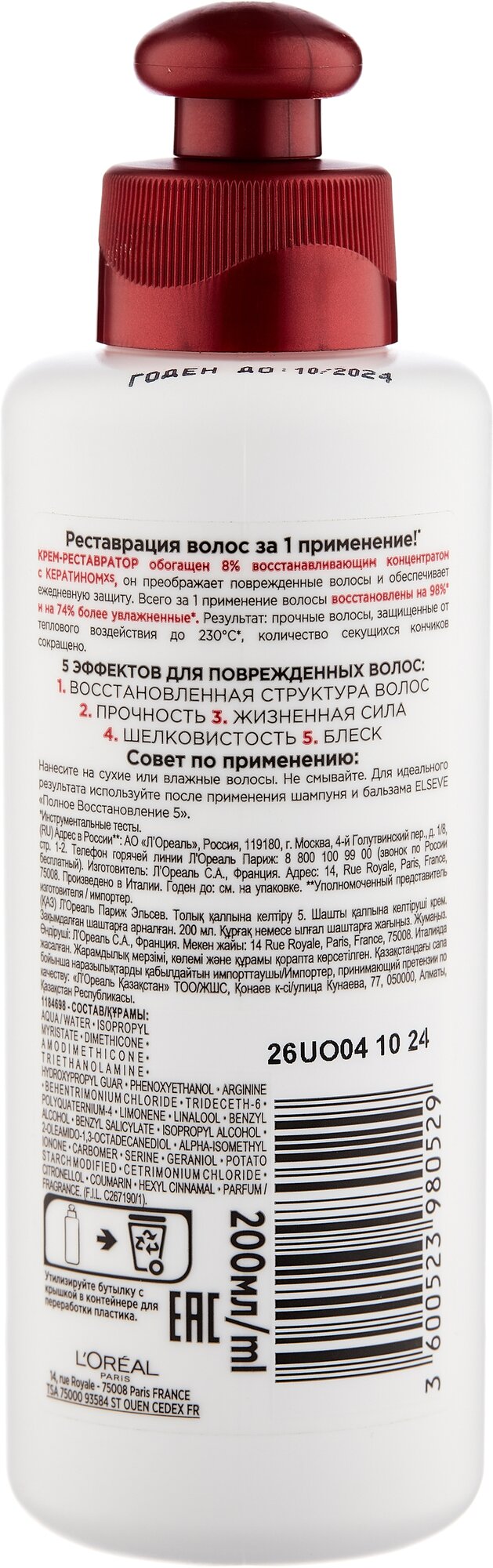 Крем-реставратор волос Loreal Paris Elseve Полное восстановление 5 200мл