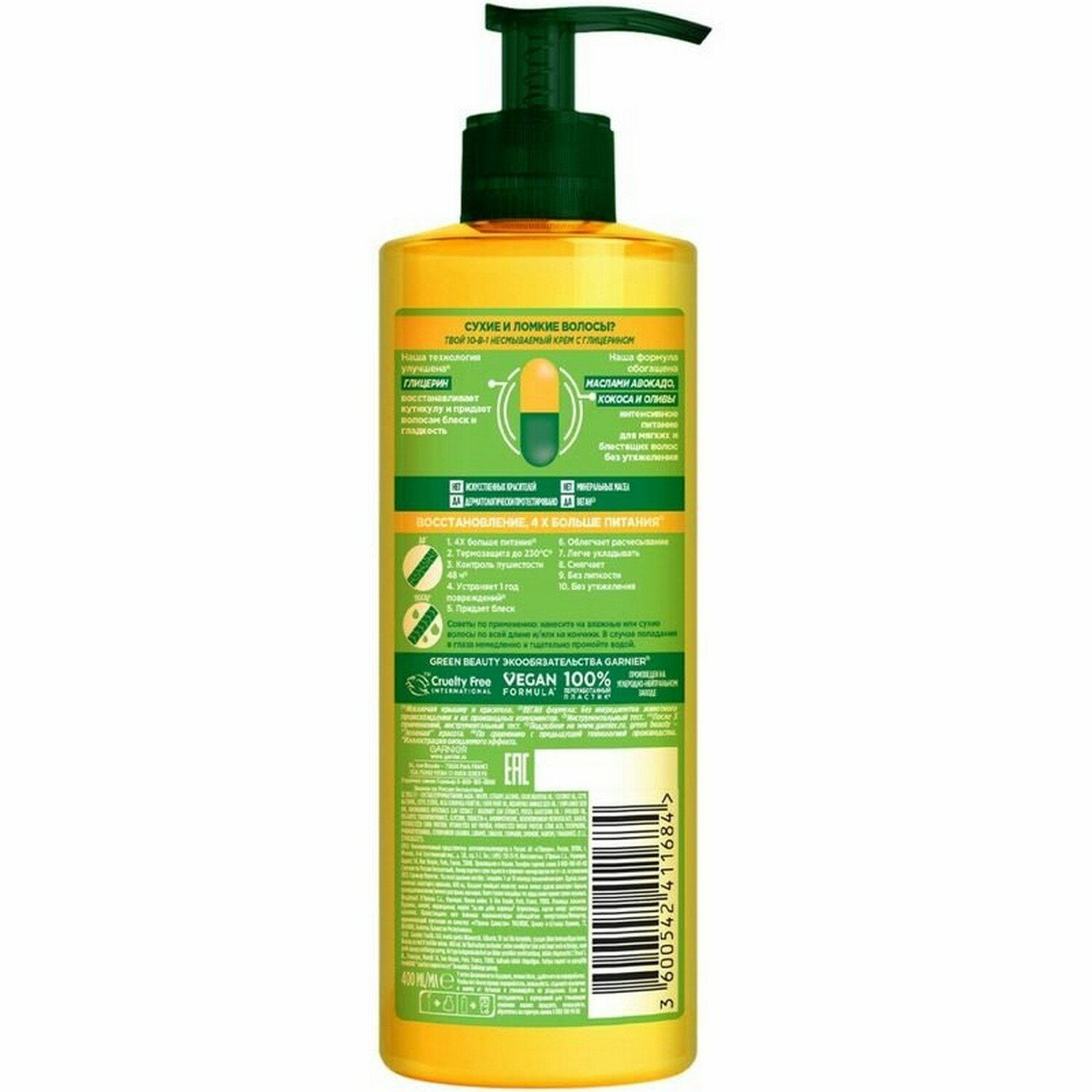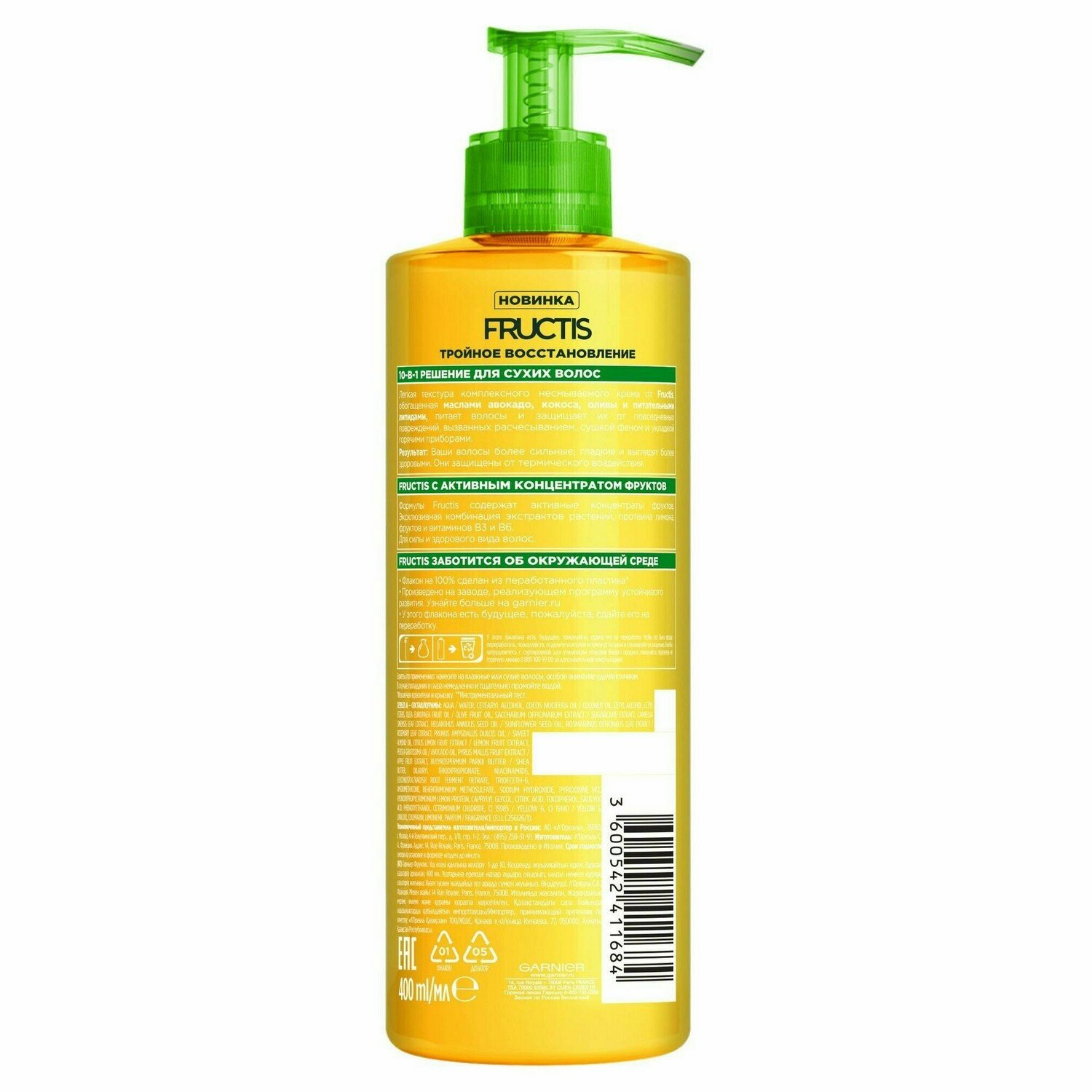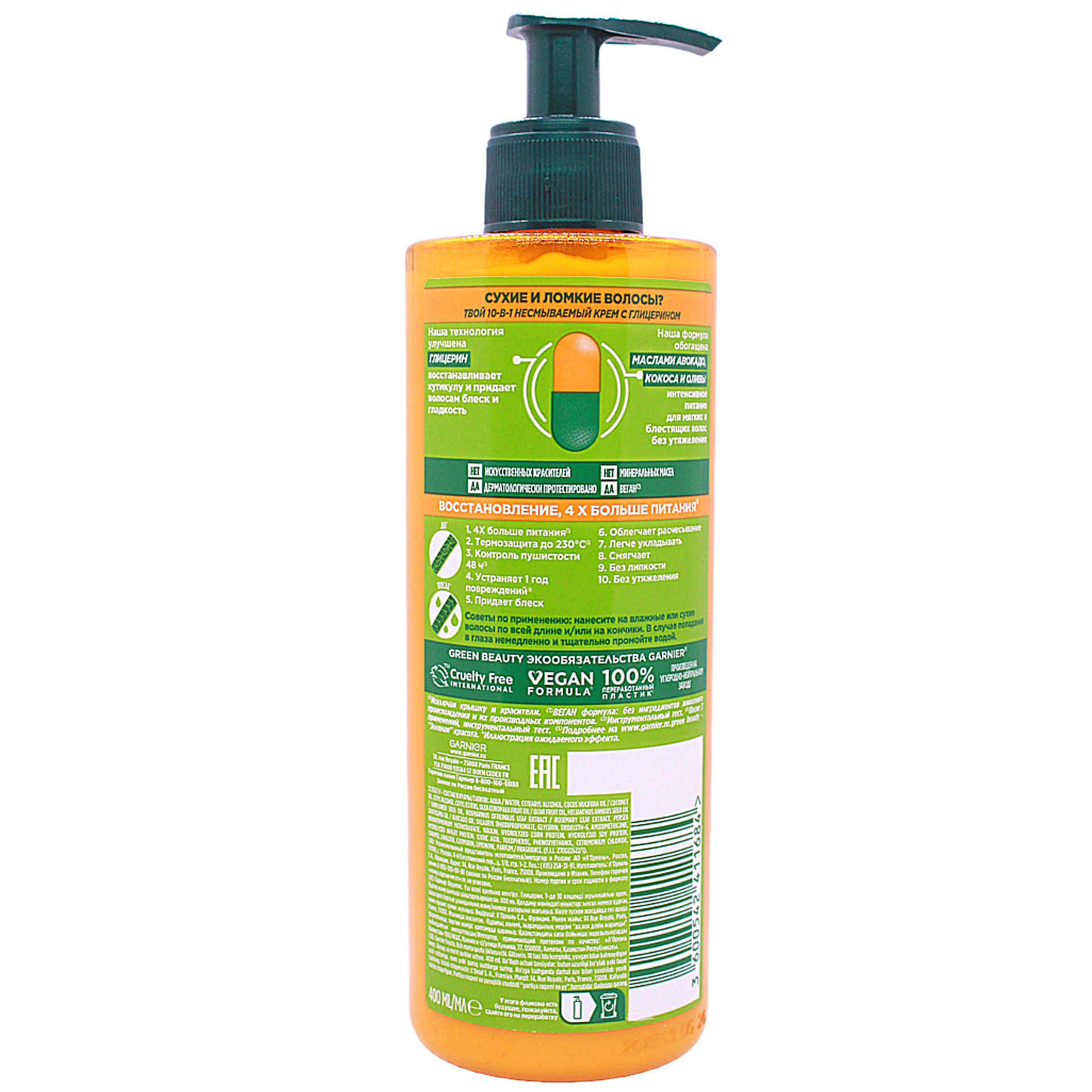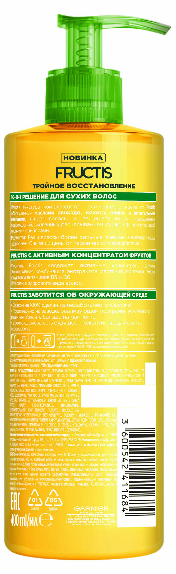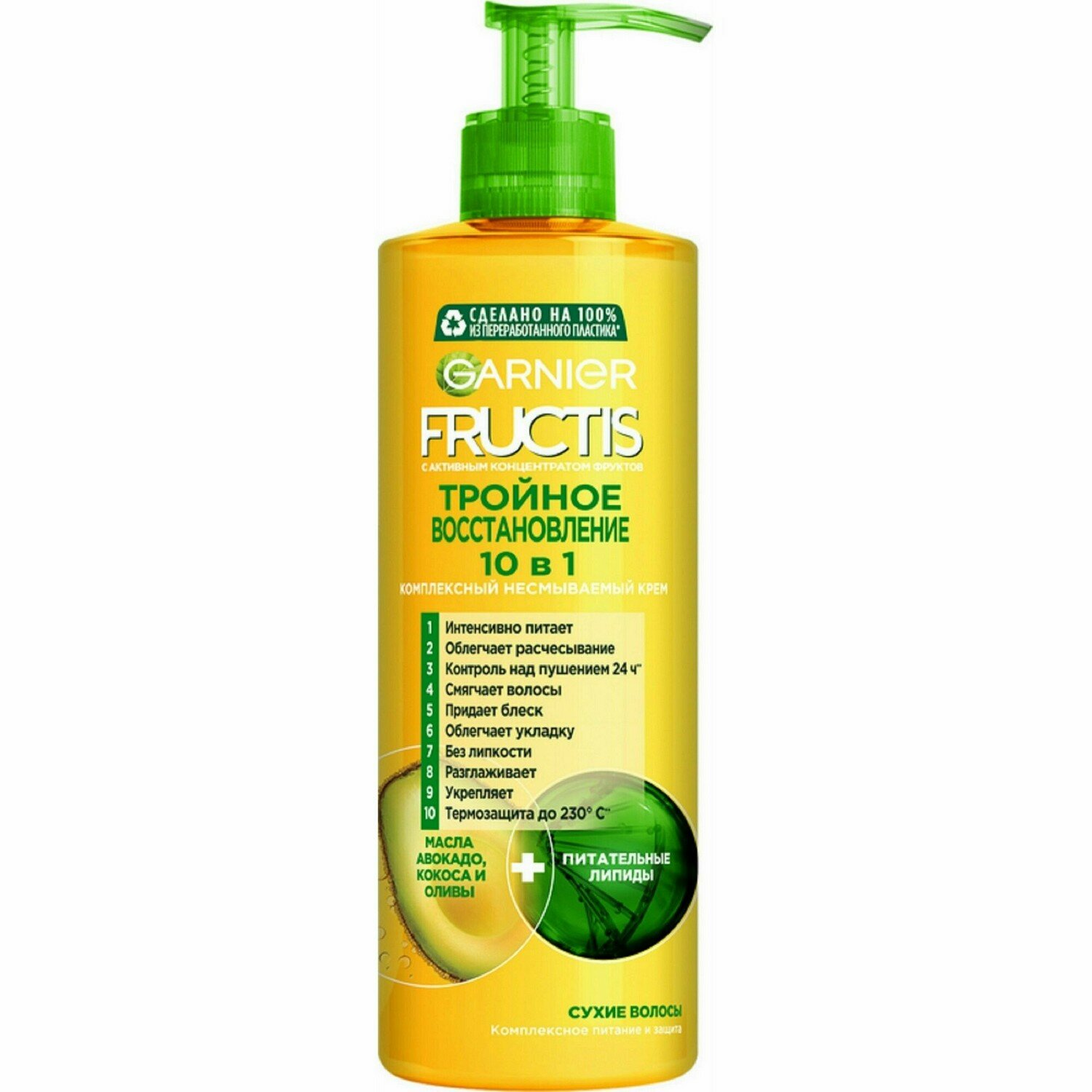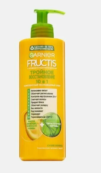 Крем для волос Garnier Fructis Тройное восстановление 10в1 с маслами авокадо кокоса оливы и липидами 400мл