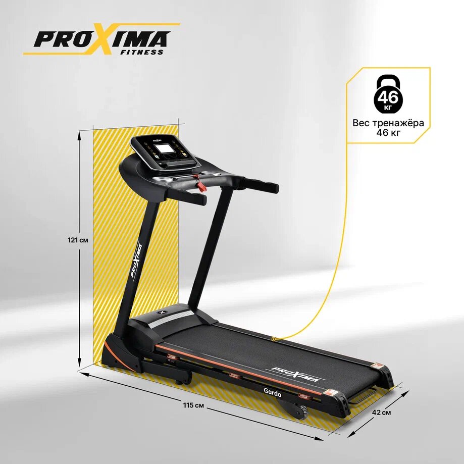 Электрическая беговая дорожка Proxima Garda - надежная и практичная, рекомендована для индивидуального домашнего использования.