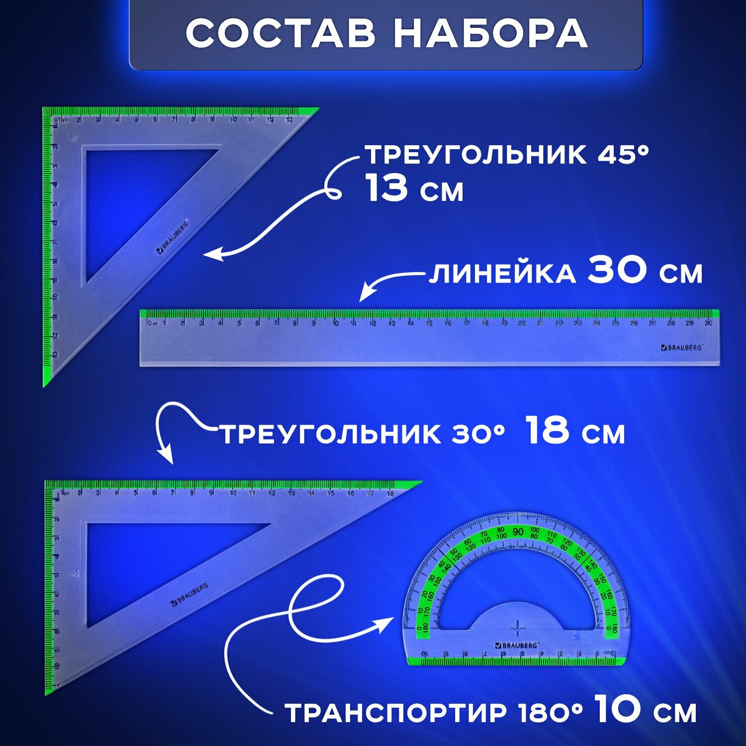| Состав набора | линейка, треугольник (2 шт), транспортир |