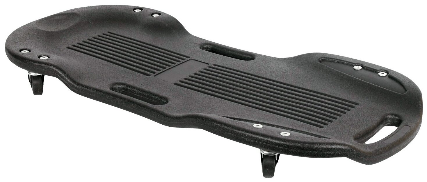 Ремонтный пластиковый подкатной лежак на 4-х колесах обеспечивает удобство проведения ремонтных работ под автомобилем. Конструкция оснащена 4 поворотными колесами для маневренности и уверенного передвижения по полу. Мягкая вставка сохраняет правильное положение шеи во время работ.
