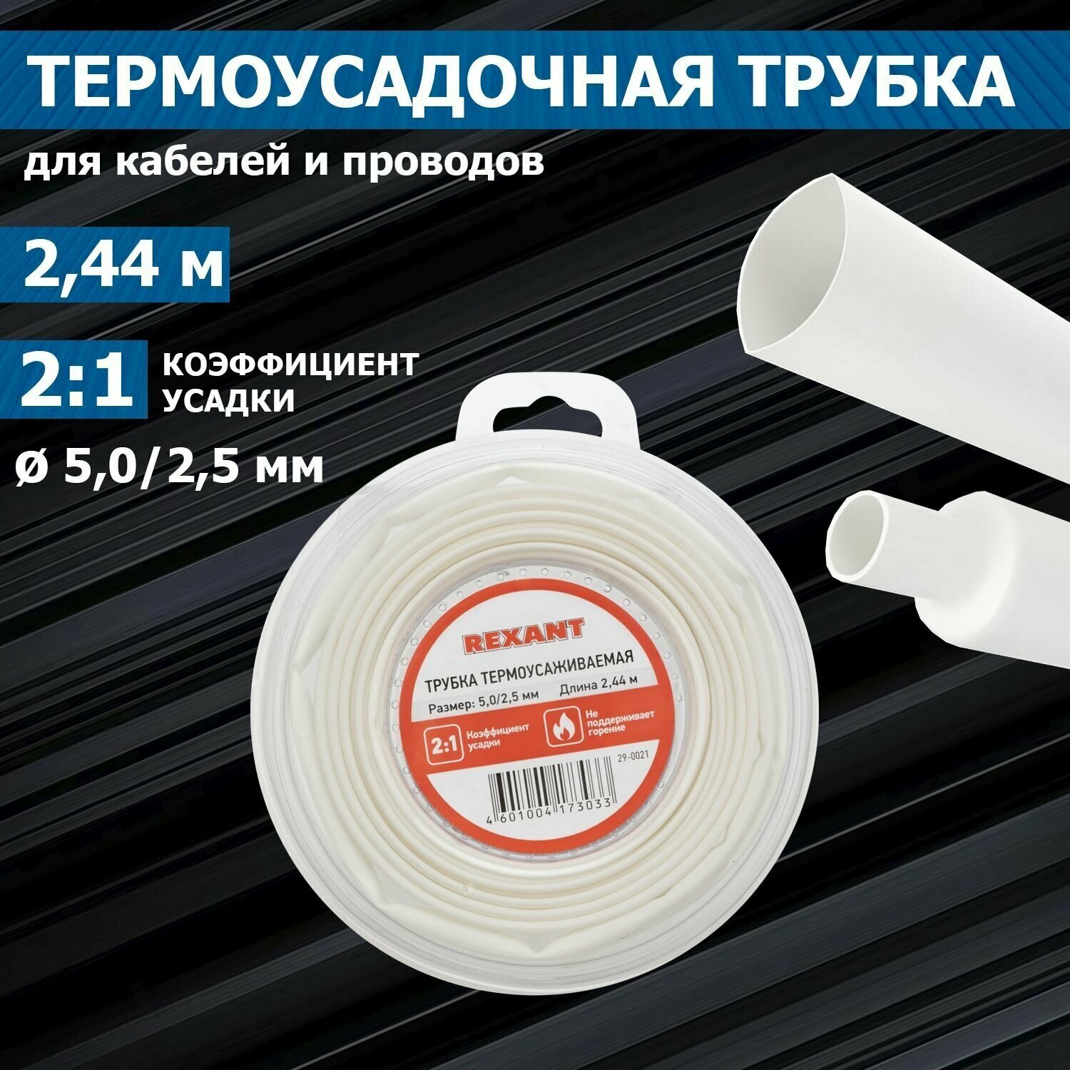 трубка термоусаживаемая 50/25мм белая ролик 244м rexant