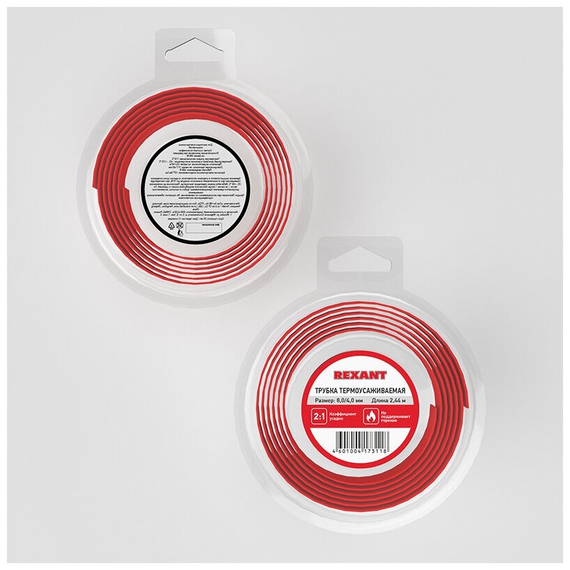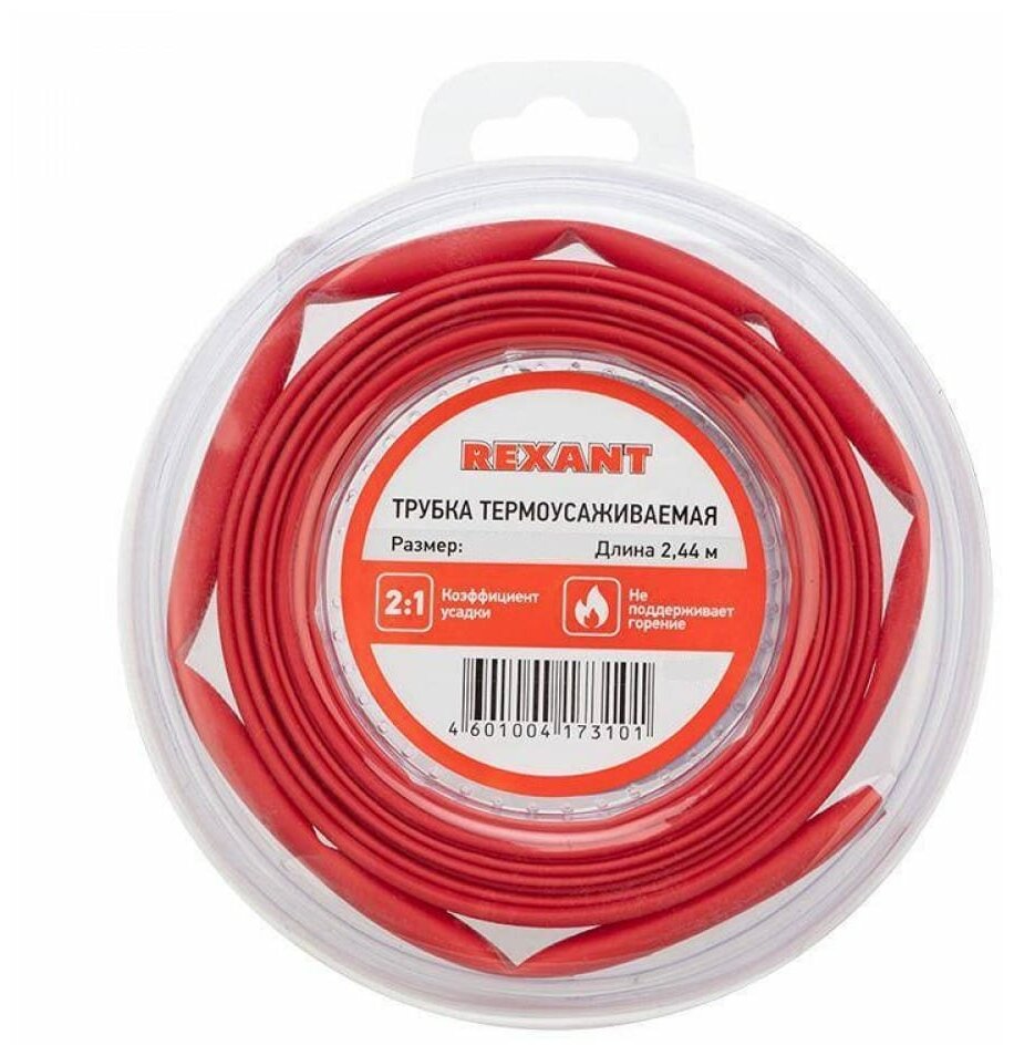 Термоусаживаемая трубка Rexant — один из самых популярных и надежных термоусаживаемых материалов. Предназначена для восстановления поврежденной и создания новой изоляции, герметизации поверхностей и электрических соединений кабелей и проводов, бандажирования и маркировки проводов, для создания антикоррозийных защитных и декоративных покрытий. Отличается высокой гибкостью; материал(полиолефин), из которого изготовлена трубка, экологически безопасен.