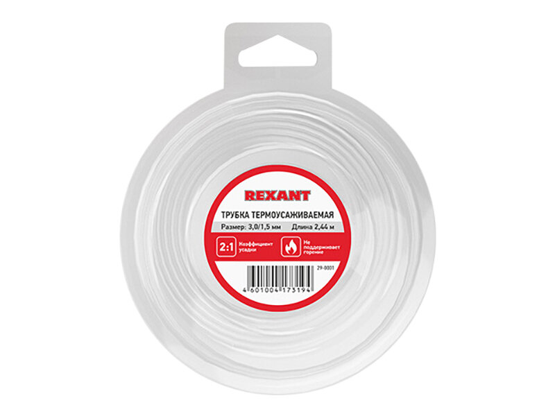 трубка термоусаживаемая 30/15мм белая ролик 244м rexant 29-0001