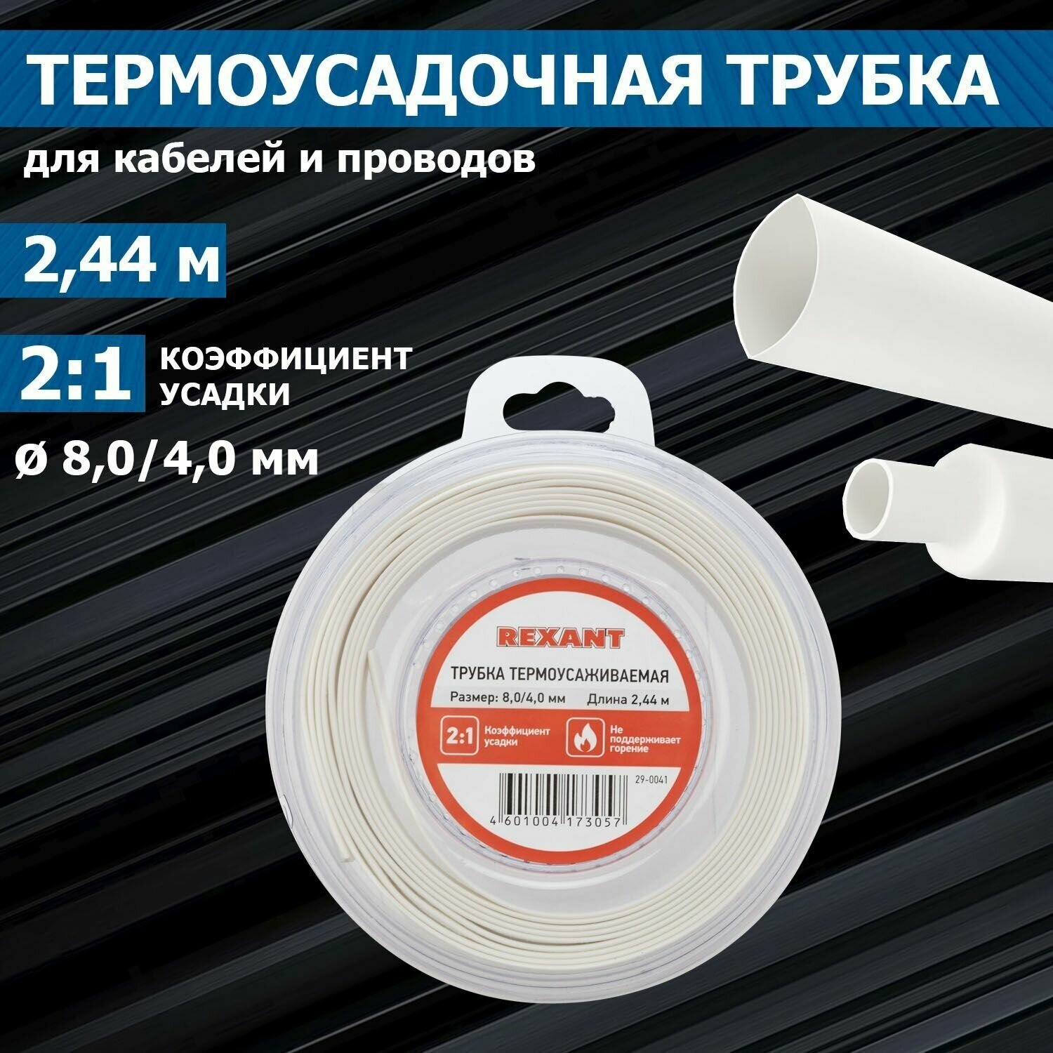 трубка термоусаживаемая 80/40мм белая ролик 244м rexant