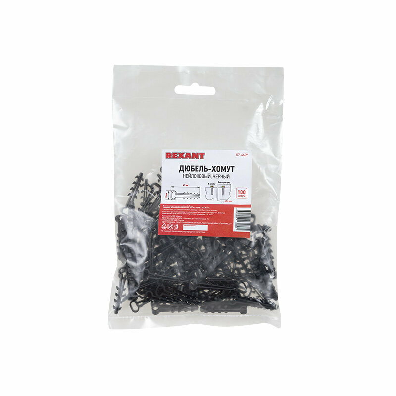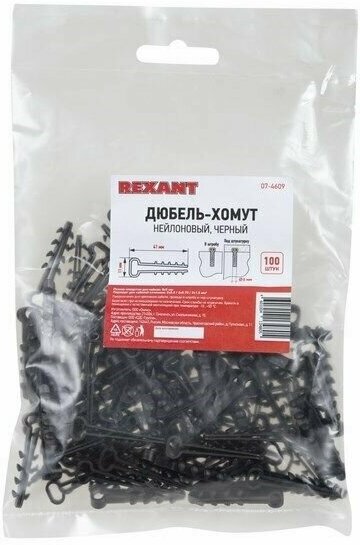 дюбель-хомут для плоского кабеля 5-8мм черный 100шт. rexant 07-4609