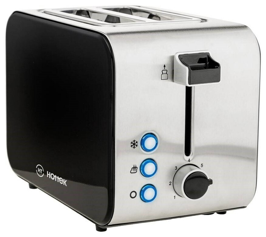 Забудьте про привычные скучные бутерброды и начинайте завтракать не только полноценно, но и вкусно! Вкуснейшие тосты на завтрак, приготовленные в стильном тостере HT-972-051, зададут нужный тон вашему дню и подзарядят вас до самого обеда. Тостер выполнен из высококачественной нержавеющей стали. Имеется 7 уровней степени поджаривания тостов, что позволит регулировать желаемую степень готовности. Автоматическое центрирование обеспечивает правильное расположение ломтиков хлеба, благодаря чему они пропекаются равномерно. Кроме функций остановки приготовления и разогрева, тостер оснащён функцией размораживания, с помощью который вы можете готовить тосты из замороженного хлеба. Для удобства имеется LED индикация голубого цвета, благодаря которой можно отслеживать работу прибора.