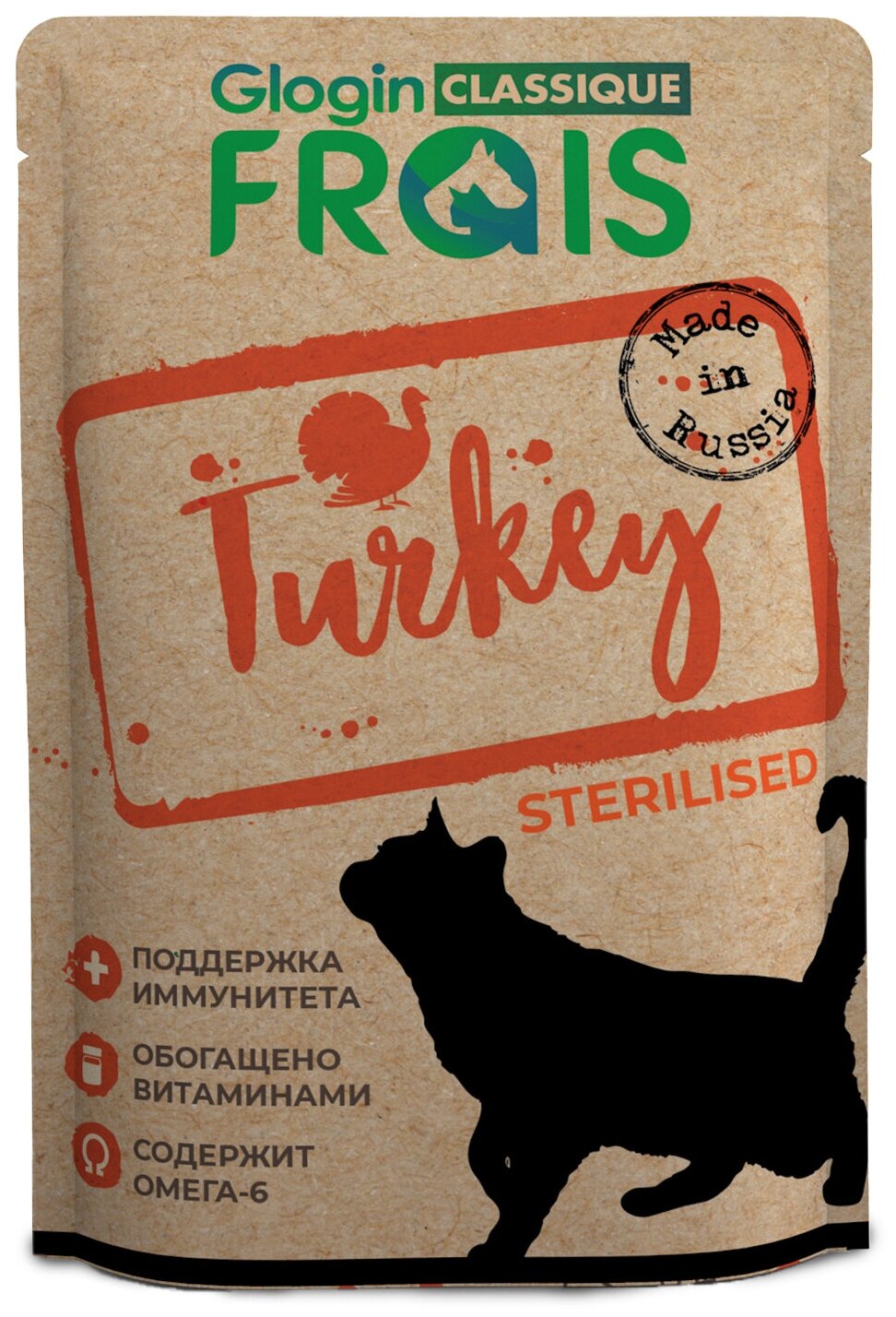 Classique для стерилизованных индейка в нежном соусе пауч 85г Frais Корм влажный Frais Classique в соусе с ягнёнком для взрослых кошек всех пород 85 г
