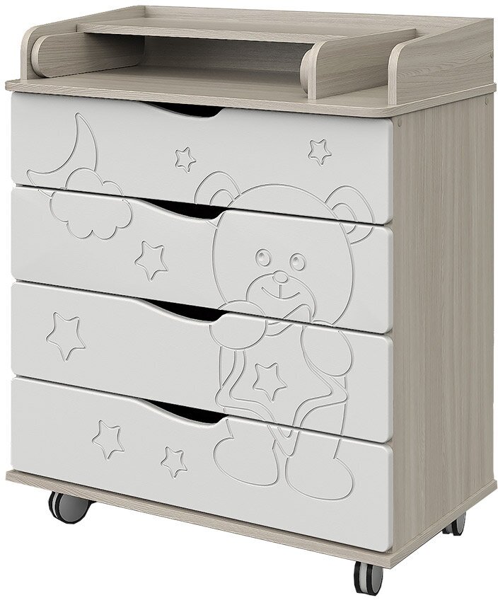 Пеленальный комод Pituso "Мишутка" с 4-мя ящиками шариковыми направляющими и колесами (цвета в ассорт.) Красная звезда (Мишутка (Орион) Сл к.\бел)