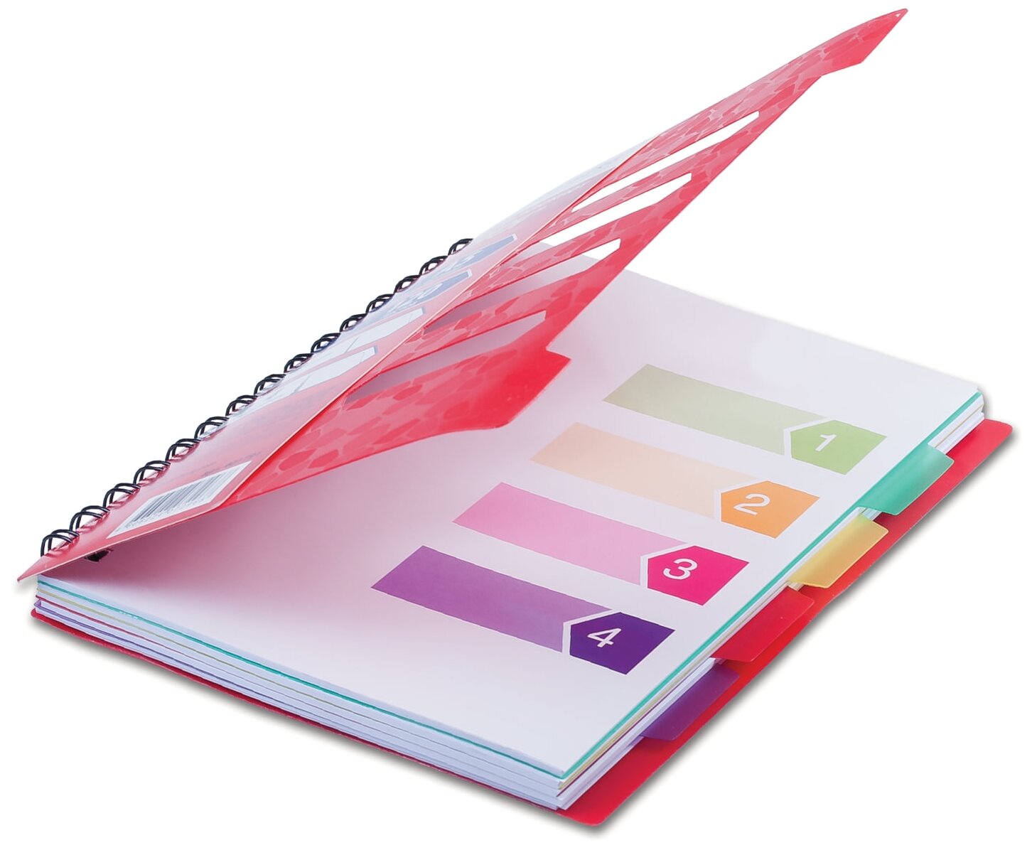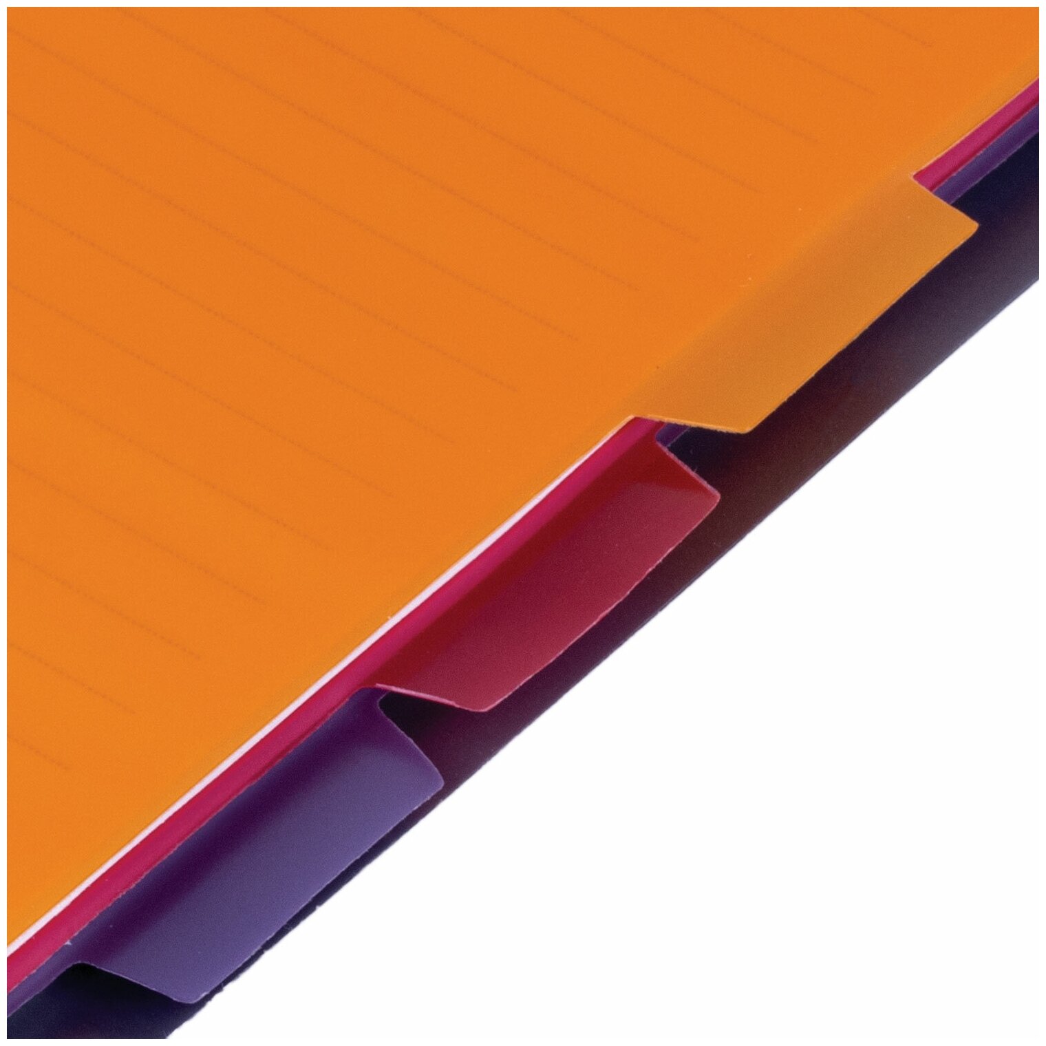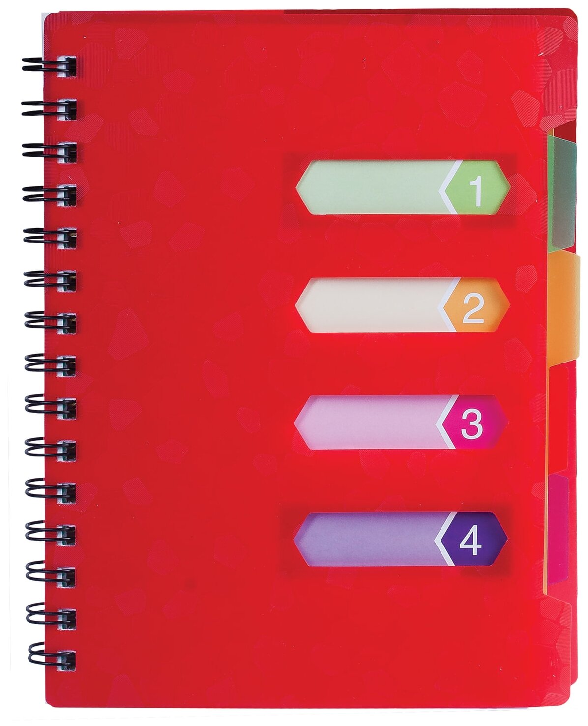 Пластиковая обложка надежно защитит внутренний блок от повреждений. Внутренний блок содержит 120 листов офсетной бумаги плотностью 65 г/м2 и белизной 100%. Линовка блока - в линию. Тетрадь снабжена четырьмя пластиковыми, съемными разделителями. Листы соединены евроспиралью. Формат А5.
