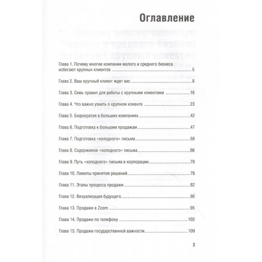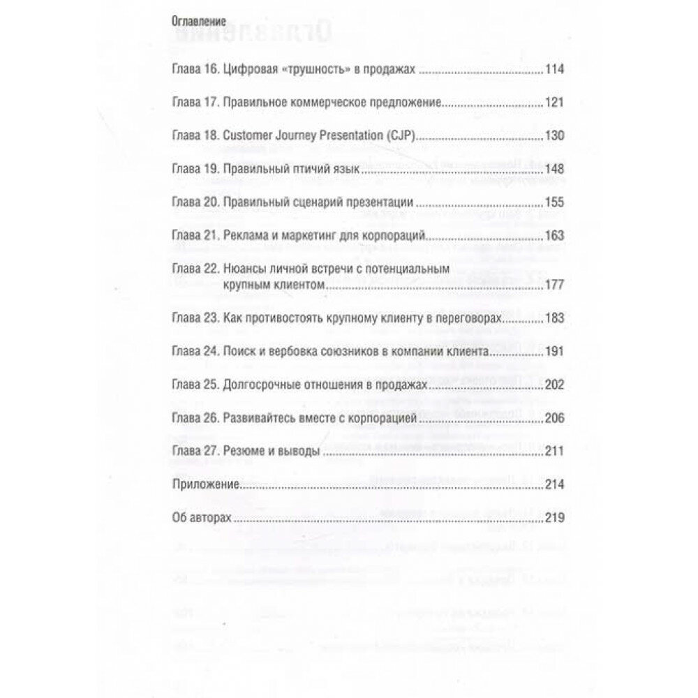 Авторы книги - известные тренеры и специалисты по продажам Евгений Колотилов и Андрей Ващенко - делятся своим практическим опытом о том, как найти крупных клиентов для вашей компании, как быстро найти лица, принимающие решения внутри крупной компании, как правильно начать с ними диалог через переписку и телефонные звонки, как проконтролировать все этапы согласования, подписания и оплаты договора, как выстраивать прочные отношения с крупными компаниями и сделать процесс продаж максимально эффективным. Вы сможете быстро сориентироваться в "лабиринтах" огромных компаний и установить взаимовыгодные долгосрочные отношения с крупными клиентами.