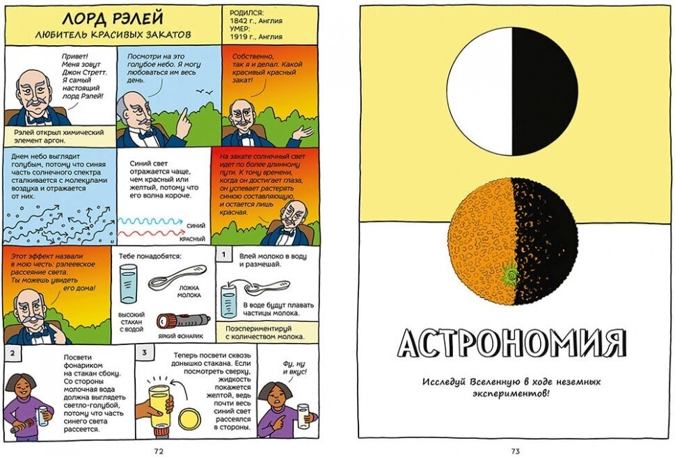 Читая ее, вы узнаете много увлекательного о научных открытиях, а главное, сможете пойти по стопам Альберта Эйнштейна, Чарльза Дарвина, Исаака Ньютона и Каролины Гершель и провести опыты дома.