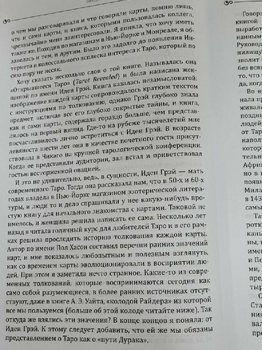 Книга больше сродне справочнику настольному. Она с краткой информацией в прямом и перевернутом положении по каждому аркану в духе автора. Подойдет в качестве вспомогательной дополнительной литературы новичкам. Исполнение книги простое и добротное: твердая глянцевая обложка, прошитые страницы, черно-белые иллюстрации арканов и удобный для чтения шрифт. Не стоит ждать от книги чего-то сверхъестественного, но и бесполезной ее не назовешь.