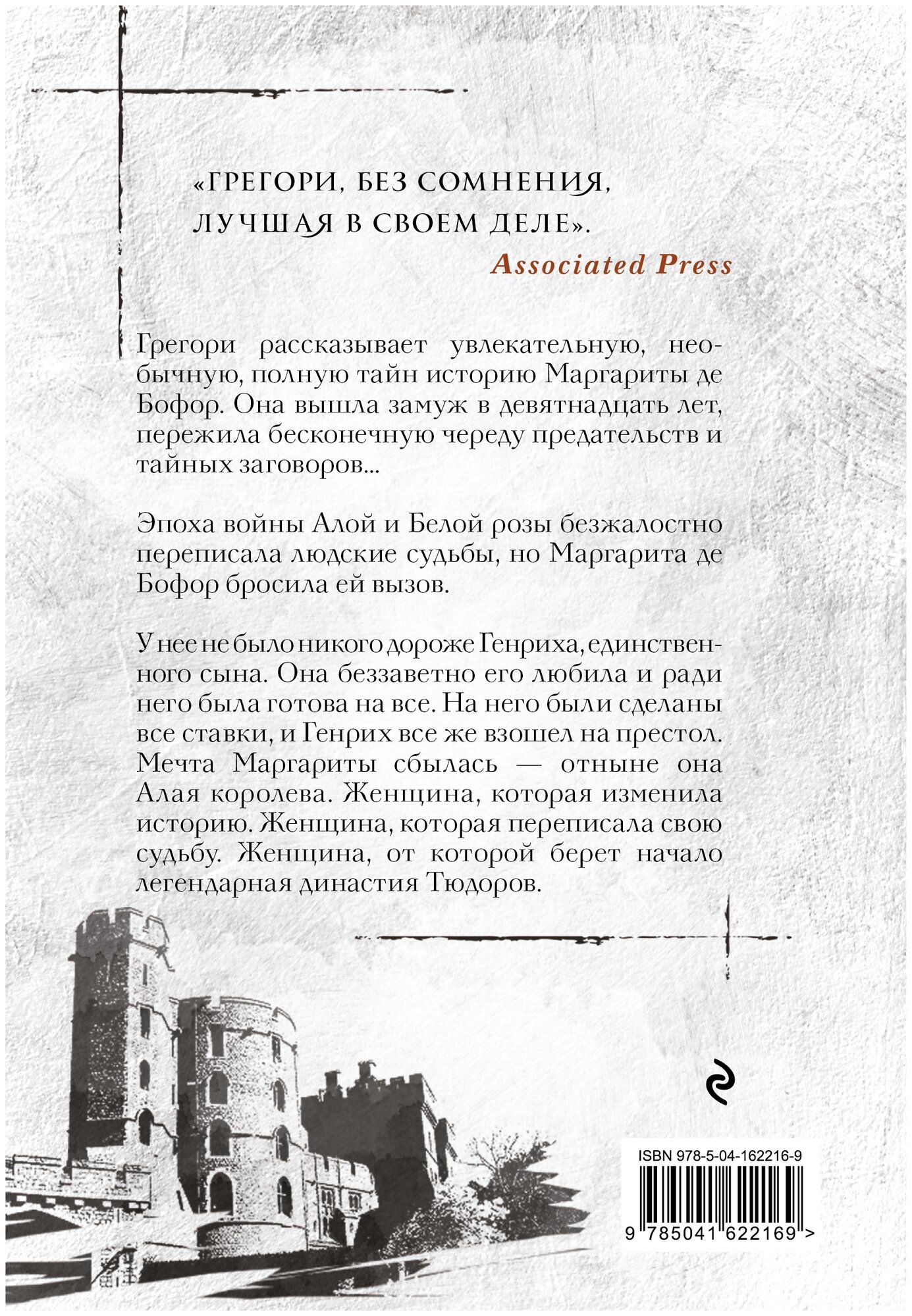Заказывала книгу через предзаказ. Первое впечатление было хорошим:красивая обложка, знакомый переводчик, приятный шрифт, но стоило мне раскрыть книгу чуть больше, как склеенные листы (первые 5 штук) начали отрываться от корешка. Это, конечно, не смертельно, но портит первое впечатление. По поводу сюжета: интересный, немного раздражает ход мыслей главной героини, но уж такой ее увидела Грегори. Рекомендую читать эту книгу после прочтения «Белой королевы», многие отсылки и слова становятся понятнее, события сюжета раскрываются под совсем другим углом - это интересно. После прочтения этой книги рекомендую «Дочь кардинала» - это еще один взгляд на уже знакомые события
