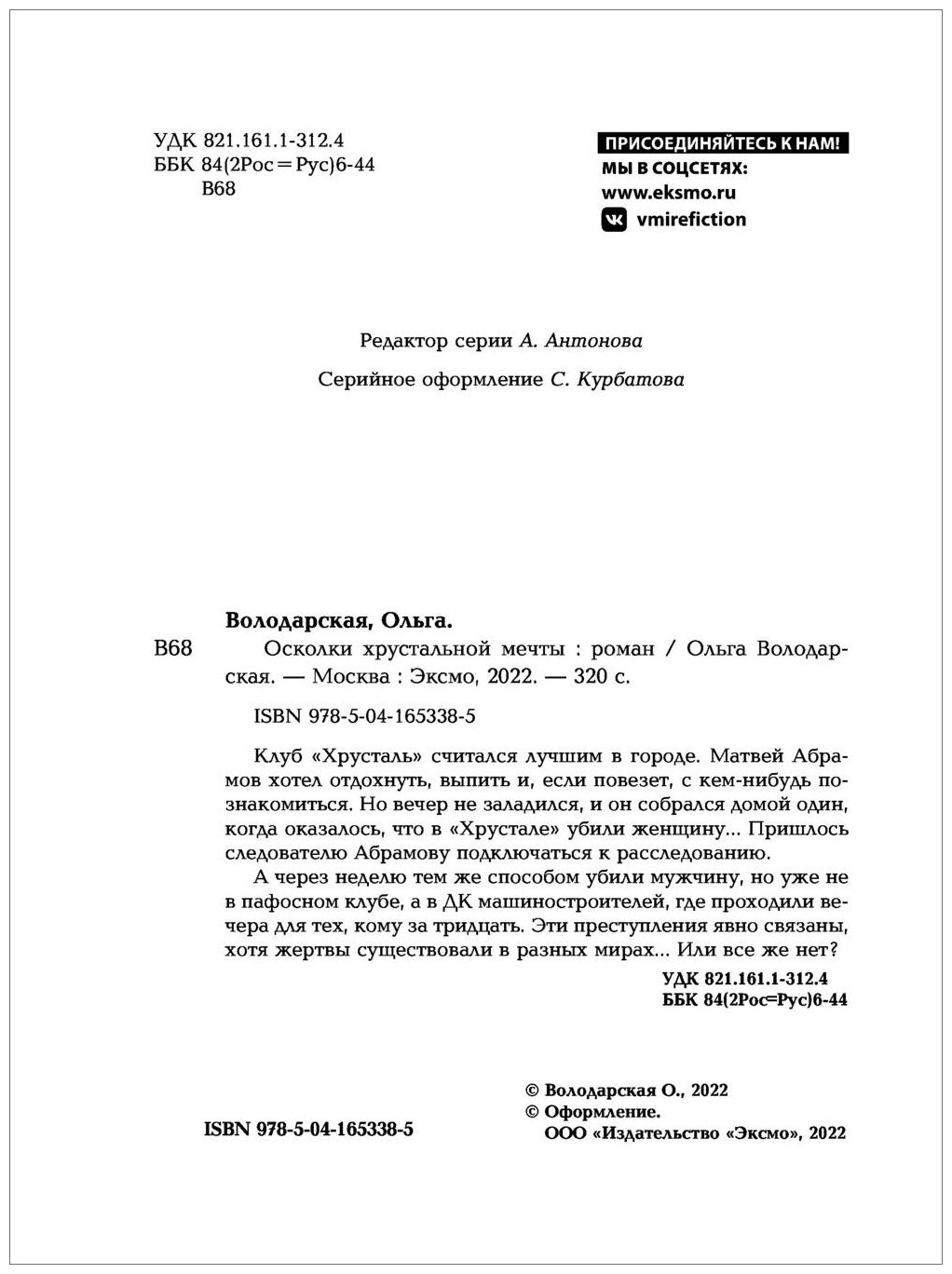 Осколки хрустальной мечты (Володарская Ольга Геннадьевна); ООО "Издательство "Эксмо", 2022