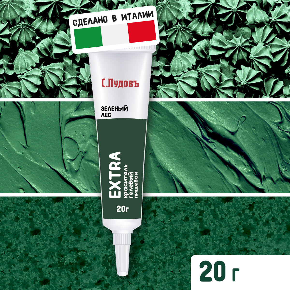 "С.Пудовъ" представляет линию ярких гелевых пищевых водорастворимых красителей EXTRA. Мы производим их в Италии из экологически чистого сырья. Натуральные и яркие кондитерские гелевые красители идеально подходят для: торт красный бархат, торта, макаронс, макарун, глазури, безе, мастики, печенья, кексов, крема, маффинов, бисквита, мороженого, суфле, желе, яиц марципана, пряников, айсинга, мыла, слаймов, эпоксидной смолы. Гели-красители "С.Пудовъ" термостабильны, а значит они подходят для десертов, которые вы готовите в духовке. Преимущества гелевых красителей "С.Пудовъ": Высокая концентрация. Достаточно нескольких капель для получения насыщенного цвета. Без запаха и вкуса. Не меняет структуру продукта, после добавления в него красителя. Идеально подходит для любого теста. Можно использовать для взбитых сливок, фростинга и любого крема на масляной основе. Европейское качество. Удобная, эргономичная упаковка.