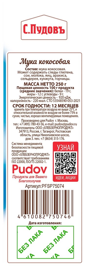 Сервис сравнения цен СкидкаГИД предлагает сравнить цены на товар «Мука С.Пудовъ Кокосовая 250г»