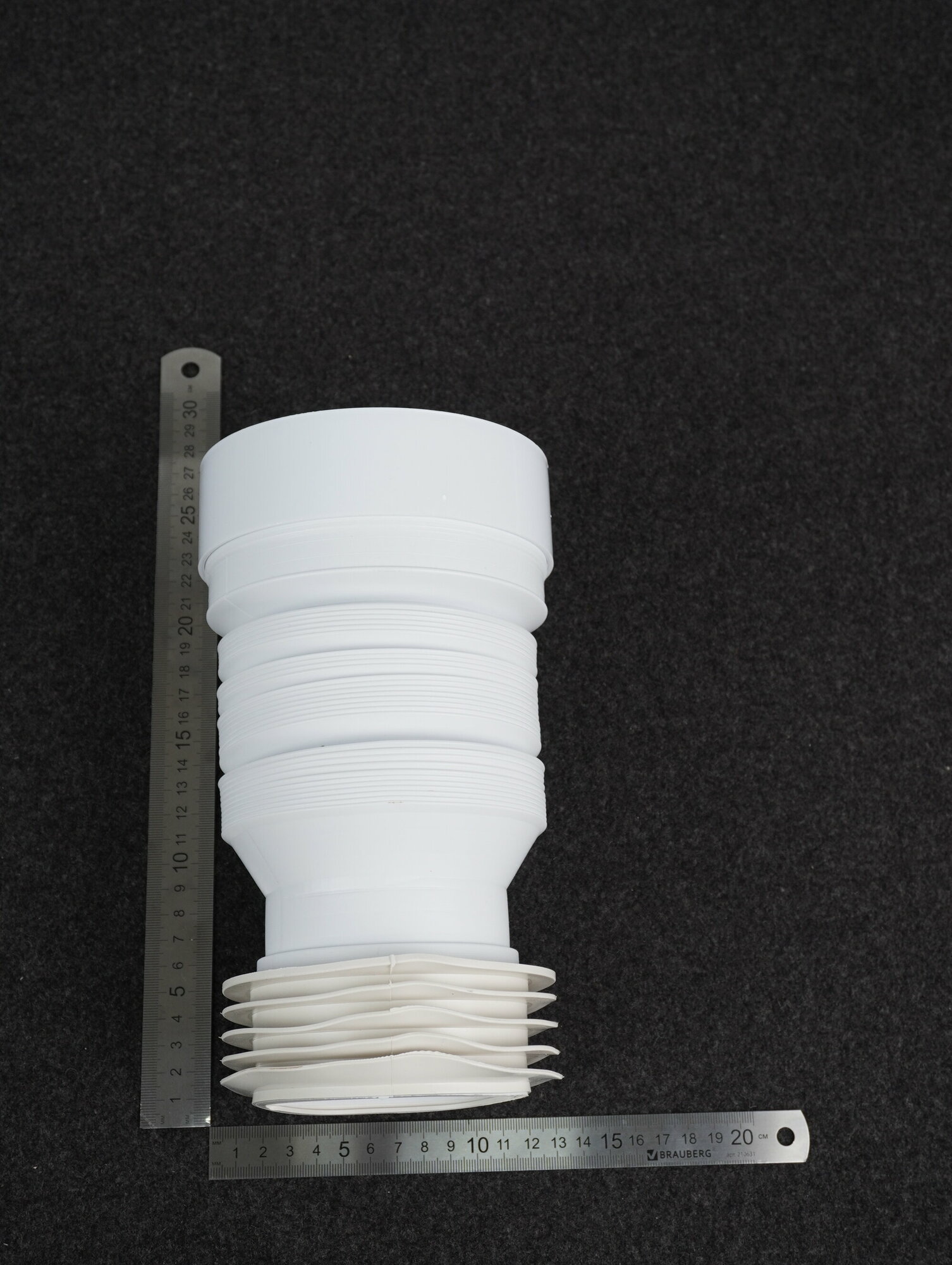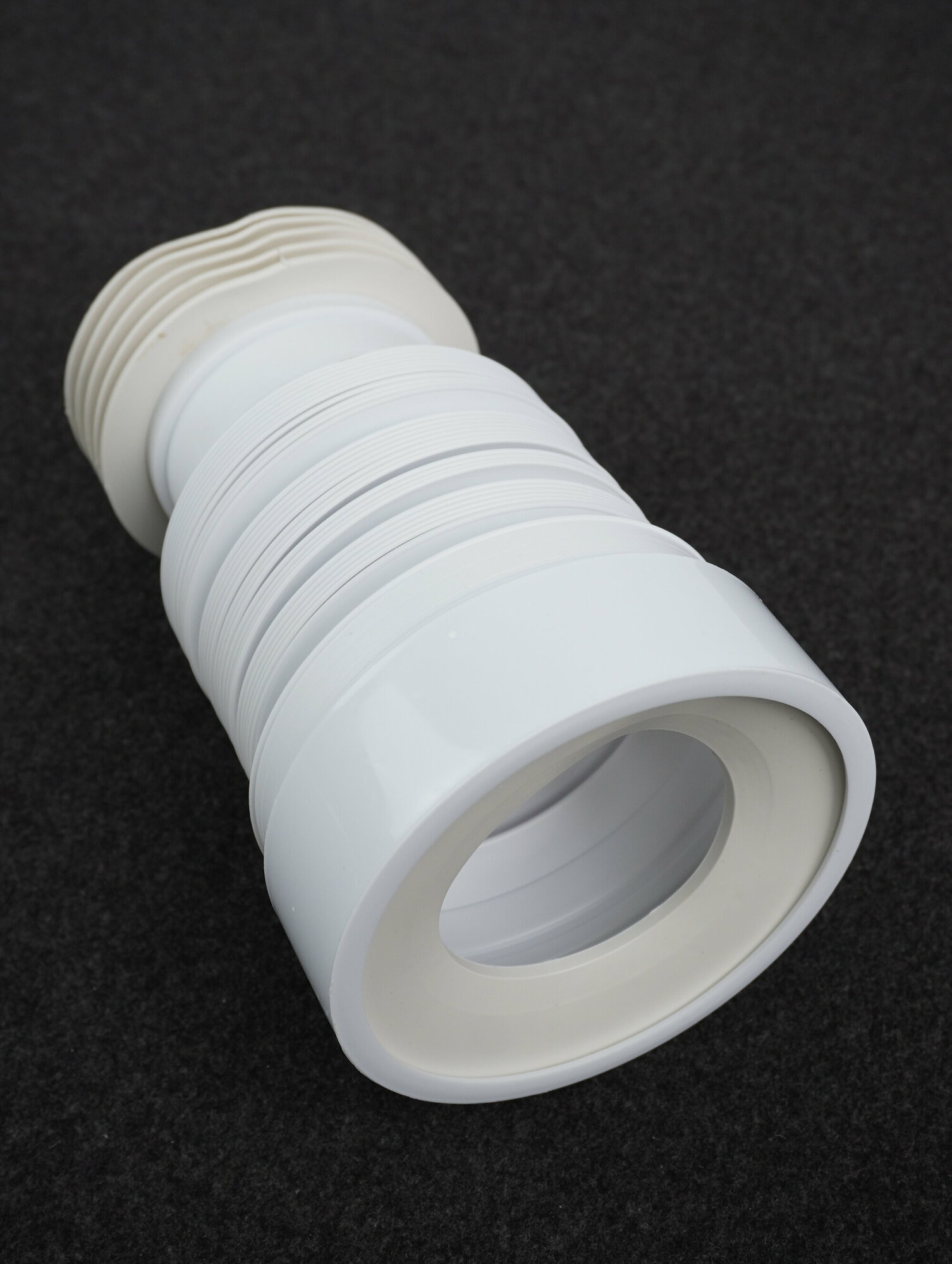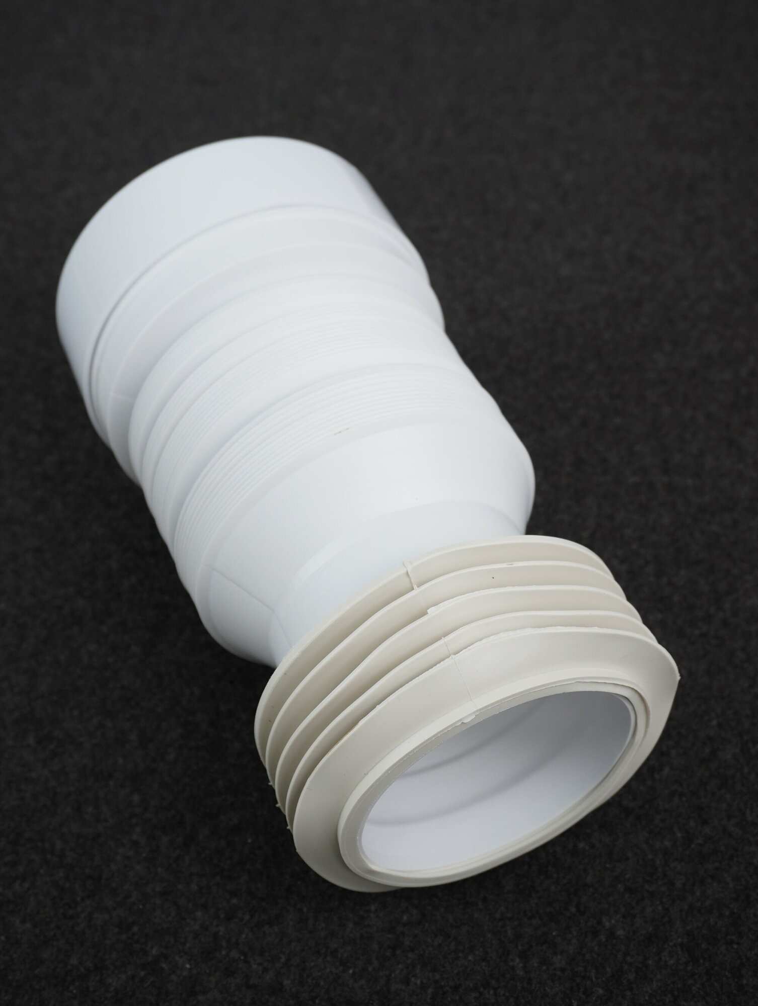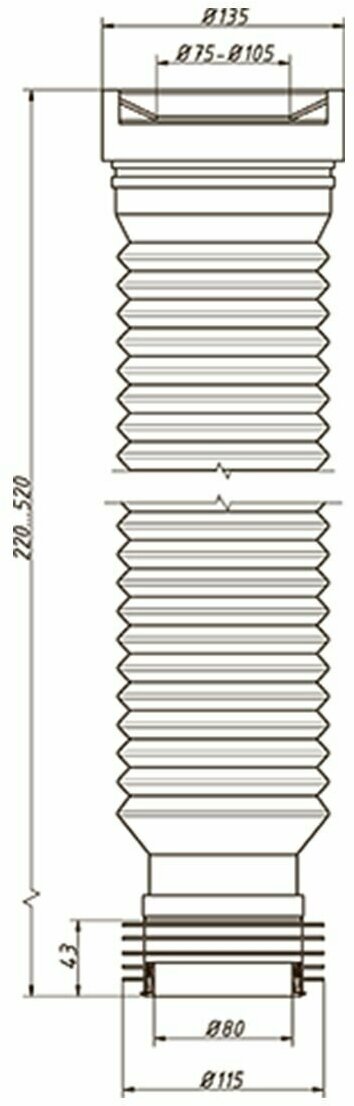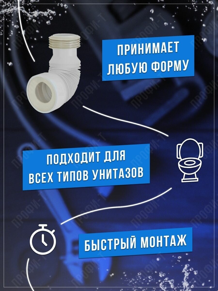 - Слив для унитаза имеет раздвижной гибкий отвод, для мобильного соединения унитаза с чугунной канализацией;