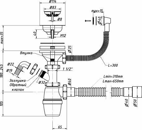 - Сборка бутылочного сифона для кухонной мойки А-4011 и А-4012