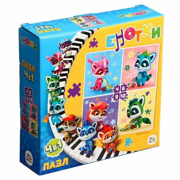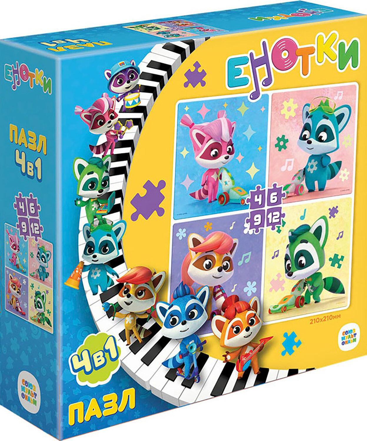 Набор пазлов 4в1 - это комплект пазлов с разной элементностью, включающий в себя головоломки из 4, 6, 9, 12 элементов, объединенных общей тематикой.