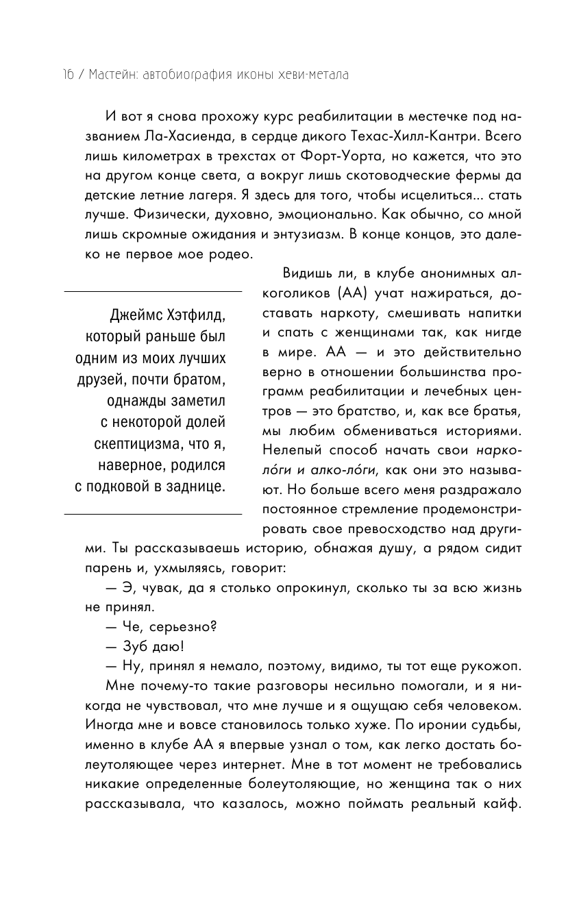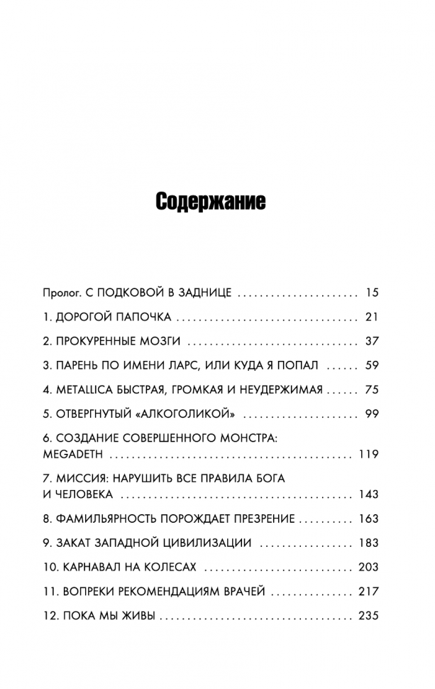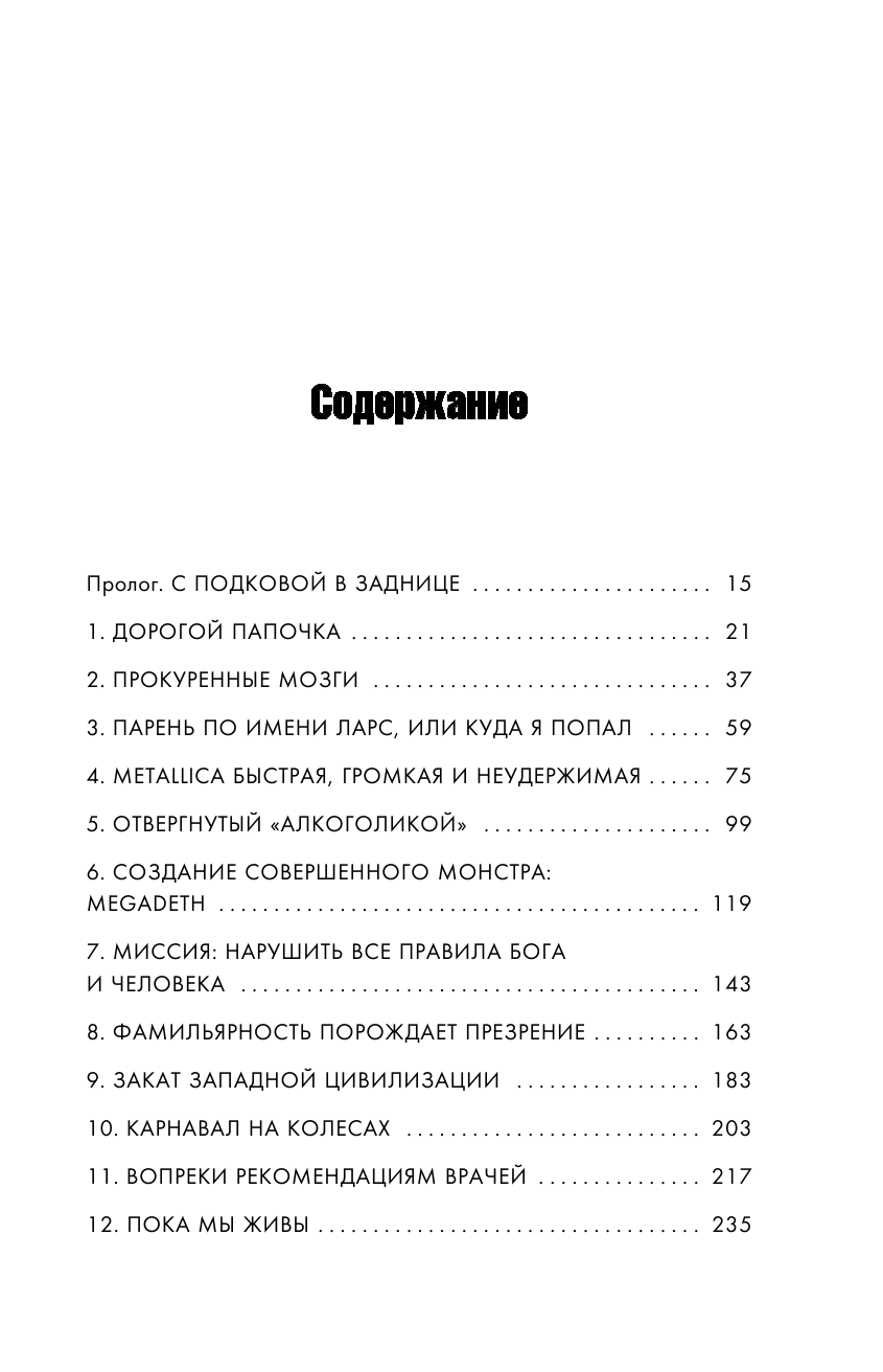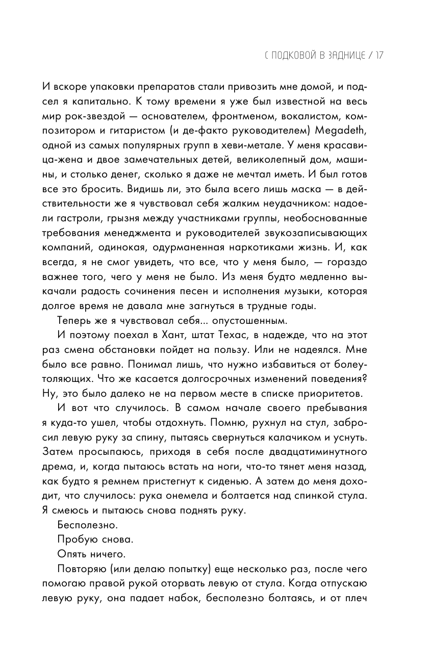 Автобиография легенды - Дэйва Мастейна. Основателя, автора песен и бессменного лидера трэш-метал-группы Megadeth (до этого играл в группе Metallica).Наркотики и алкоголь проходят через жизнь Мастейна красной нитью, а бесконечные конфликты с участниками Megadeth - отражение чрезмерного перфекционизма и тяжелого характера. Настоящим же испытанием для гитариста стала травма, едва не поставившая крест на его карьере. Зажатый лучевой нерв чуть не стоил ему самых важных ролей в жизни: музыканта, отца и мужа. Мысль о том, что он никогда не сможет играть на гитаре, сводила с ума, однако именно травма в конечном итоге привела музыканта к вере в Бога. Его история послужила вдохновением для целого поколения фанатов и музыкантов. Внутри вкладка с цветными фотографиями. Перевод на русский сделан редакторами портала metbash.