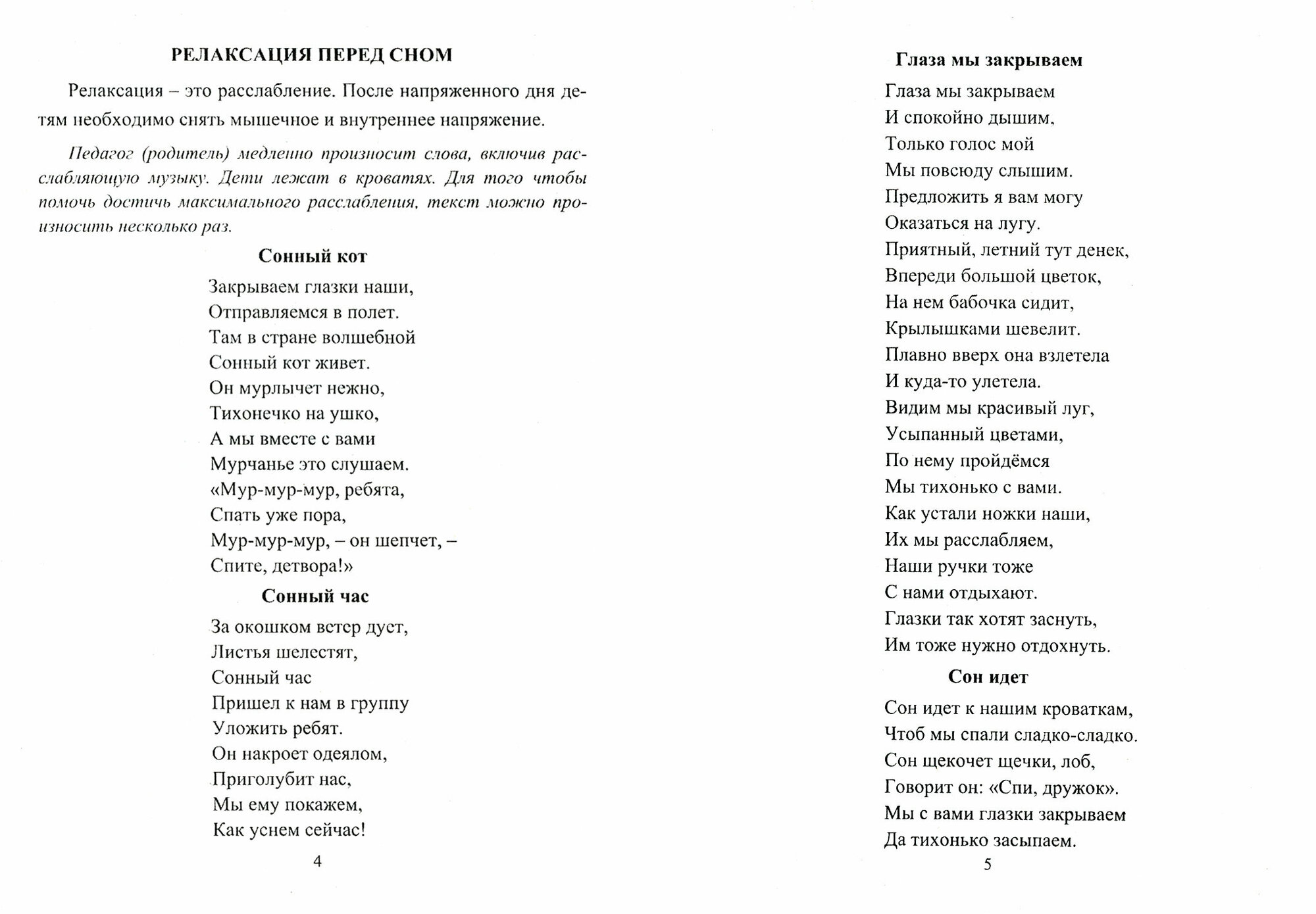 В книге представлены несколько видов упражнений: расслабление перед сном, гимнастика после сна, артикуляционные и кинезиологические упражнения, психогимнастика (разыгрывание сюжетов сказок).