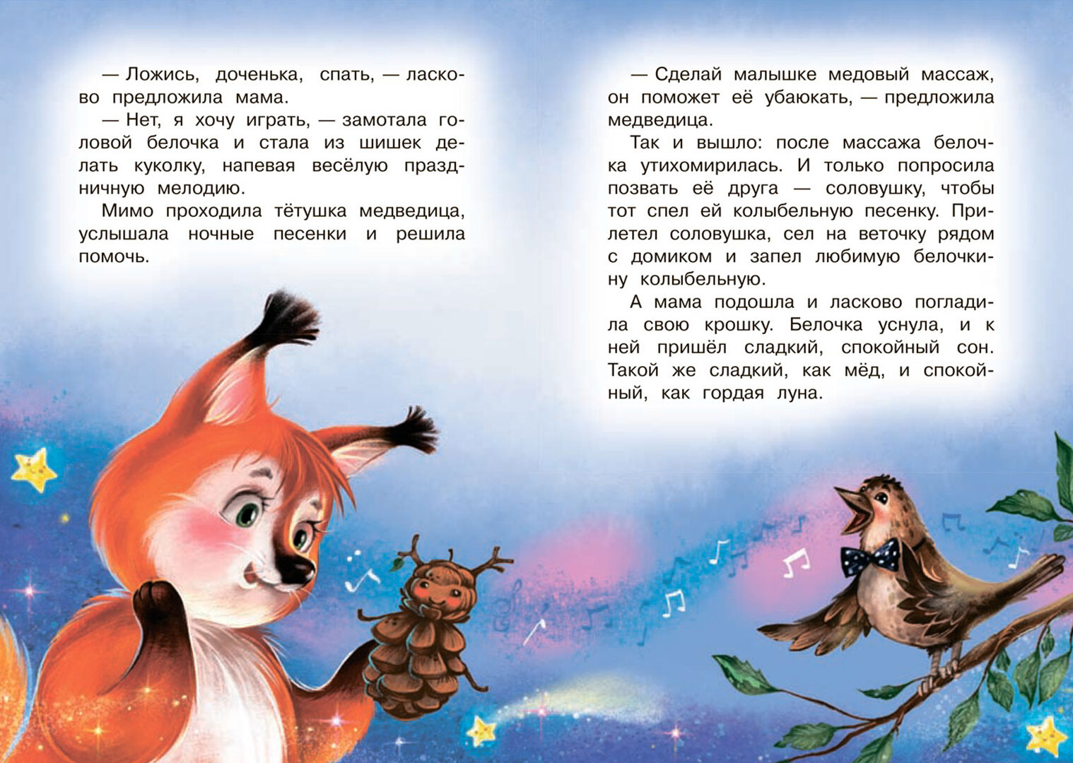 Добрые и уютные сказки с волшебными иллюстрациями помогут ребёнку настроиться на спокойный сон. В книгу входят две сказки: "Страшный сон и добрый сон" и "Сладкий сон".