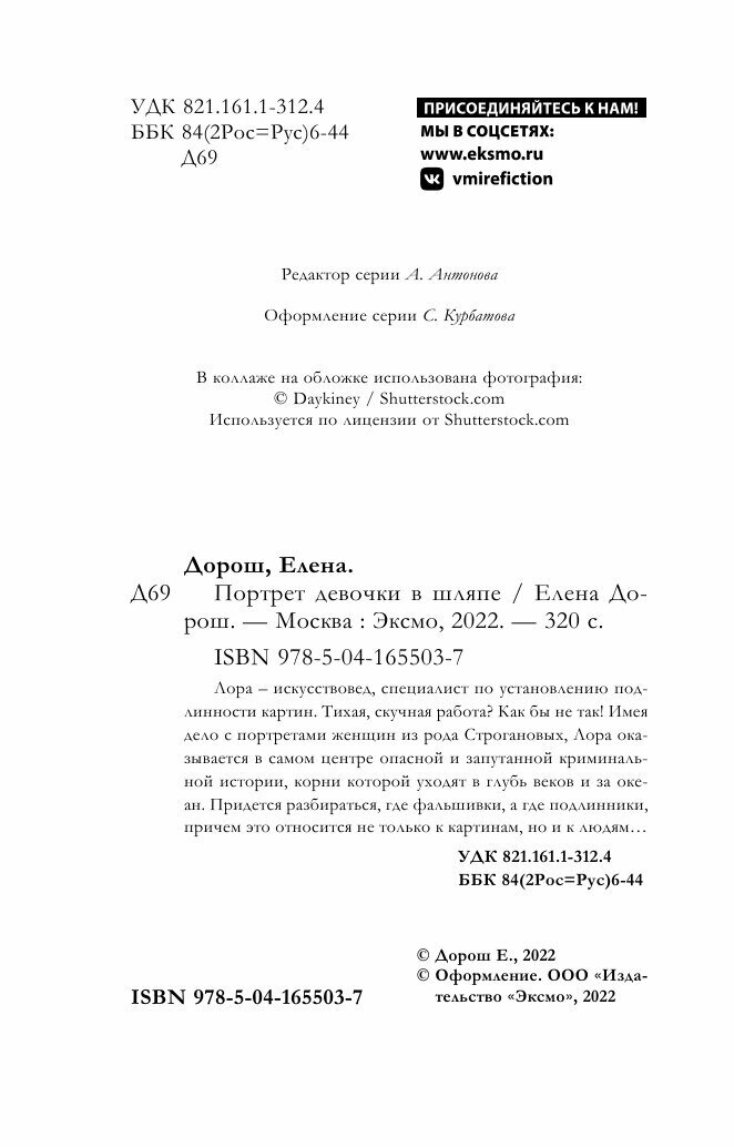 Книга: Портрет девочки в шляпе (Дорош Елена); ООО "Издательство "Эксмо", 2022