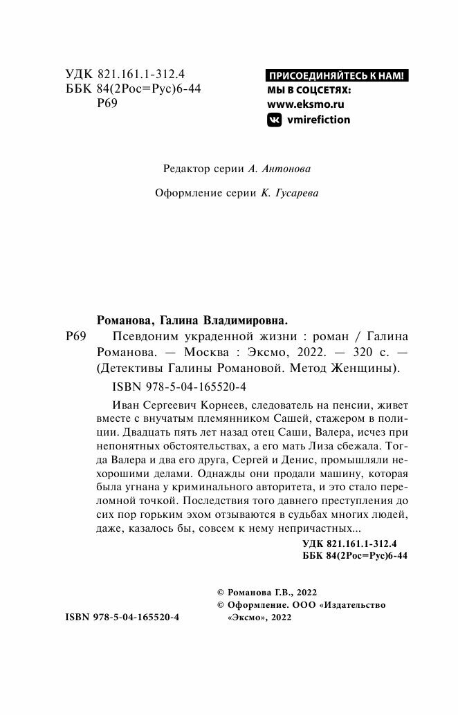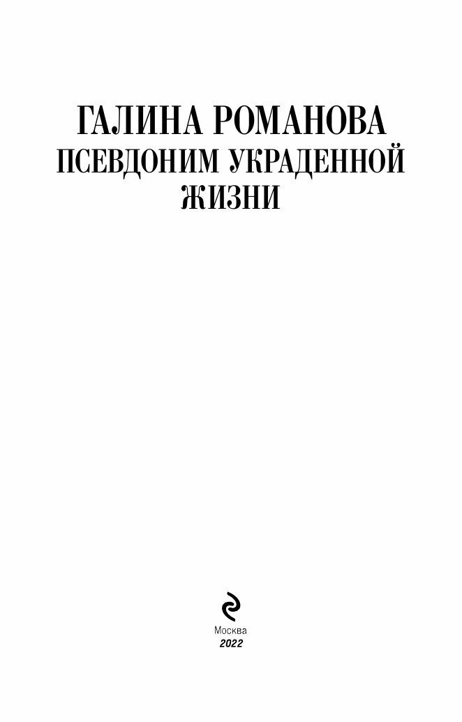 Псевдоним украденной жизни (Галина Романова); Эксмо, Редакция 1, 2022