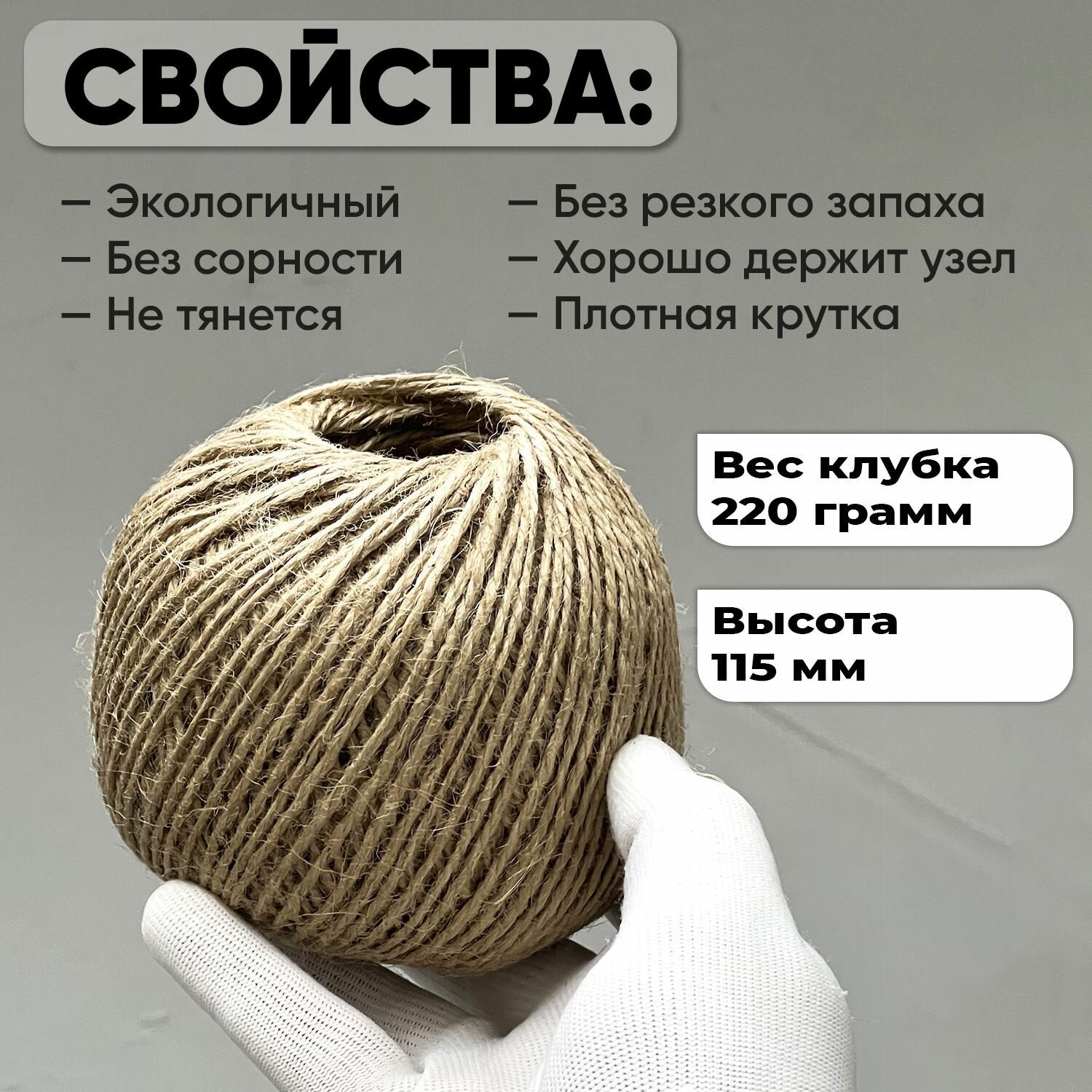 Джутовый шпагат truEnergy упаковочный, 1.8 мм, клубок 200 м предназначен для хозяйственных работ. Механическая прочность одинакова и в сухом, и в мокром состоянии, благодаря чему шпагат практичен в использовании. Выполнен из джута, поэтому устойчив к истиранию. За счет большой длины шпагата хватит на долгий срок.