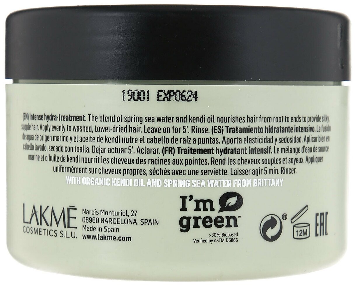 В формуле интенсивной увлажняющей маски выделяется восхитительное сочетание морской воды и масла кенди, которое интенсивно питает волокно волос от корней до кончиков. Волосы приобретают естественную шелковистость и эластичность. Индекс натуральности составляет 95%.